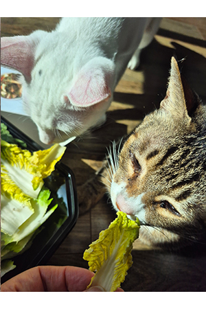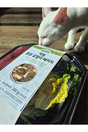 자, 봄동 개봉! 어머머! 웬 고양이? 신기하죠? 우리 집 고양이, 희한하게 풀을 좋아해요.^^