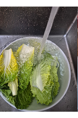 물에 씻어 (깨끗하게 씻는 것 잊지 마세요.)