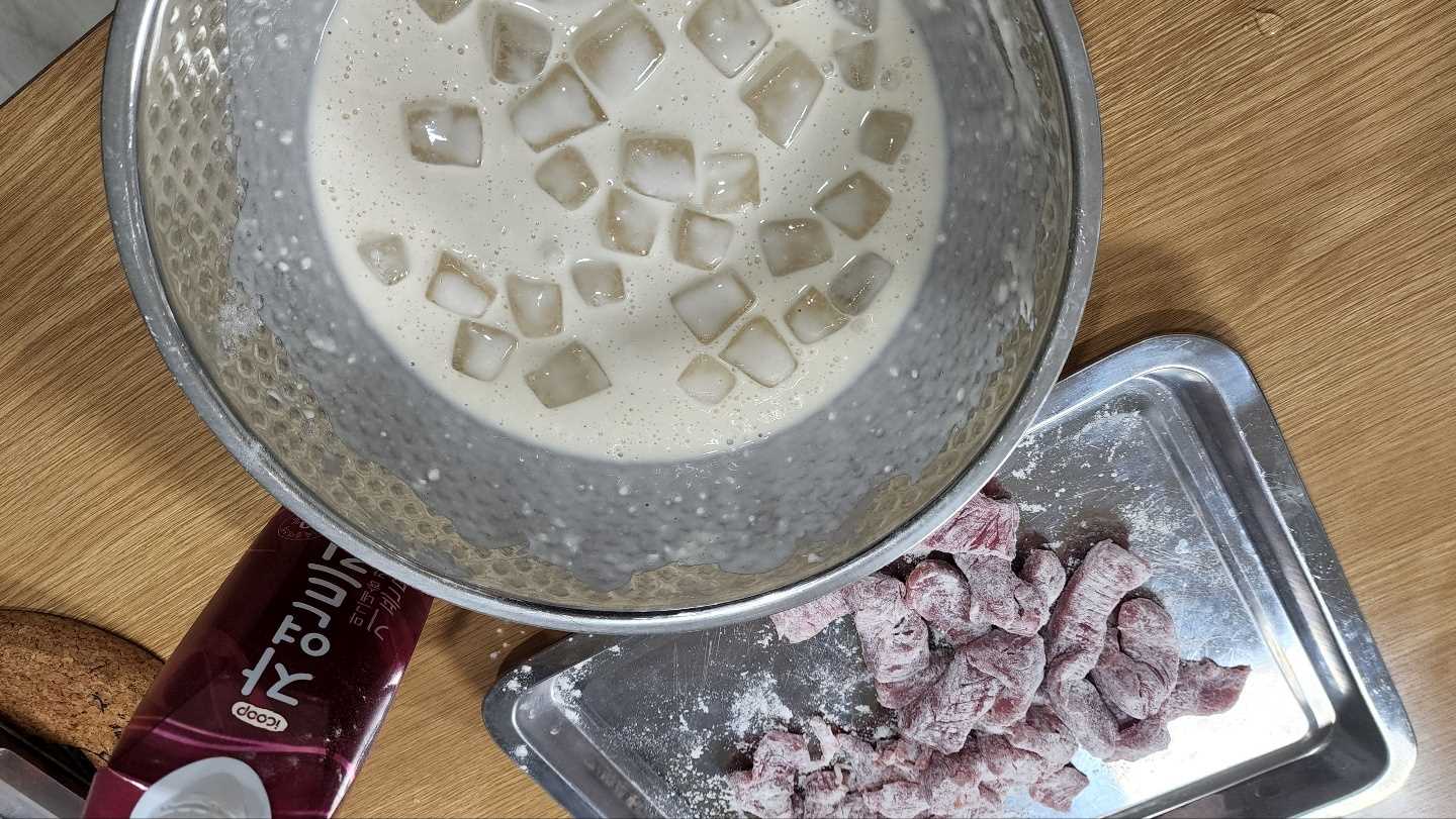 *튀김 반죽은 오래 저을수록 바삭함이 떨어지니 너무 많이 젓지 않도록 하십시오.