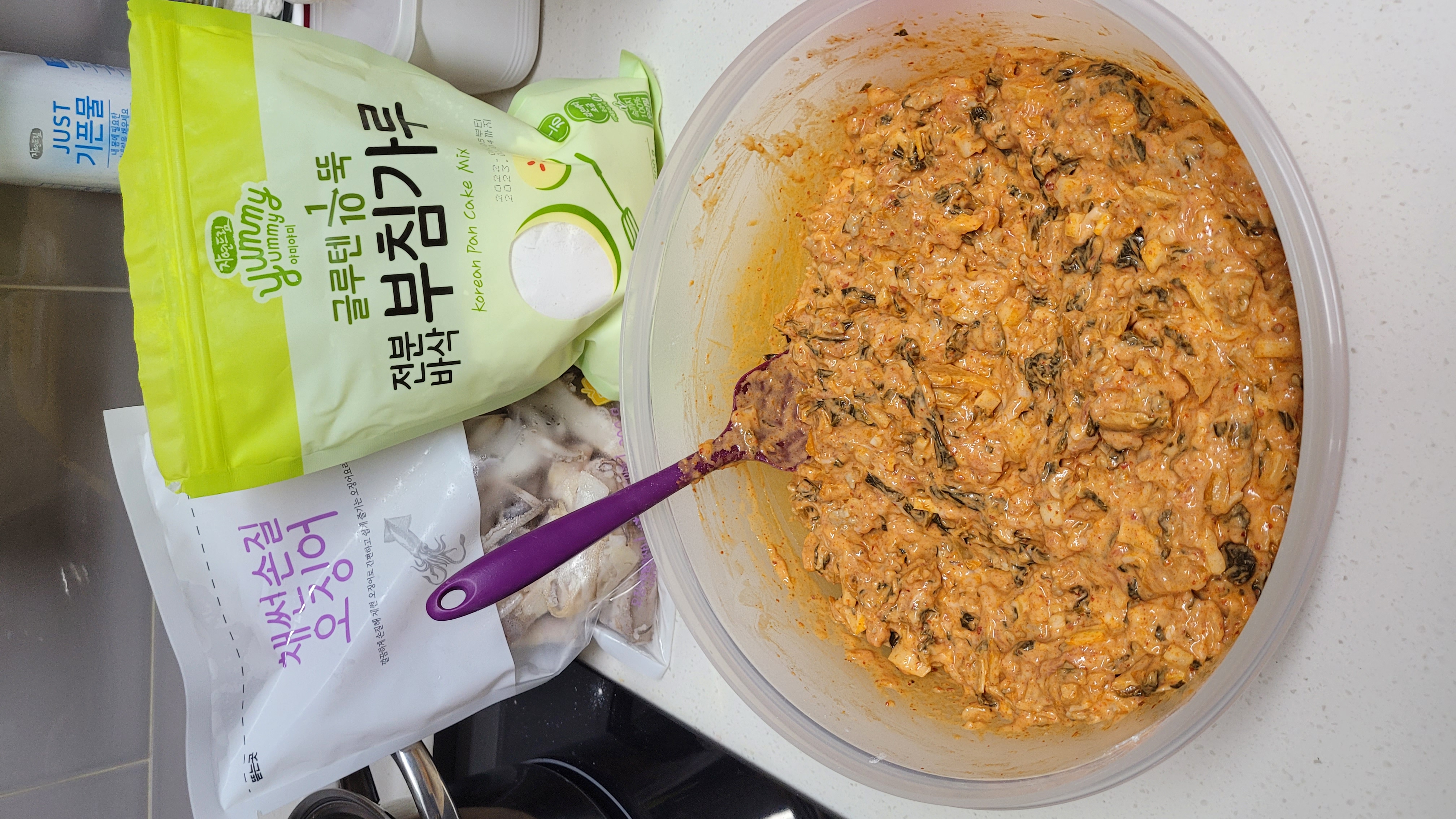 | | | 물품특징 | | 모든 부침요리를 간편하게 만들수 있는 부침가루입니다. | | | 이용방법 | | ①부침가루 500 g(1봉지)에 물 800ml(큰컵으로 4컵)를 붓고, 덩어리가 지지않도록 잘 저어 반죽을 합니다. ②부추,파,호박,고추,깻잎 등 기호에 맞는 재료를 썰어 넣은 후 잘 섞어 줍니다. ③가열된 후라이팬에 기름을 두른 후 반죽을 고르게 편 다음 3~4분정도 부칩니다. ※ 조리시 기름이 튀어 화상을 입을 수 있으니 주의하십시오. | | | 생산과정 | | 원료계량 → 혼합 → 충진 → 포장 | | | 기타사항 | | · 원재료 중 마늘분말, 양파분말에 의해 뭉침현상이 있을 수 있으나, 이는 품질에 이상이 있는 것이 아니오니 안심하고 드셔도 좋습니다. · 이 제품은 알류, 우유, 메밀, 땅콩, 대두, 새우, 돼지고기, 복숭아, 토마토, 호두, 쇠고기, 조개류를 사용한 제품과 같은 시설에서 제조하고 있습니다. | |