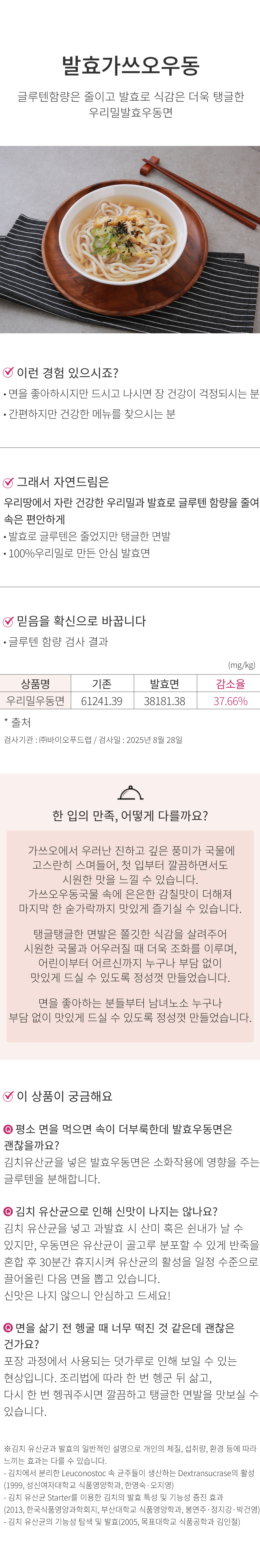 | | 공급시기 | | 상시공급 | | 식품유형 | | 생면/주정처리제품/가열하여 섭취하는 냉동식품 | | 생산지 | | 주식회사 면장/ 충청북도 괴산군 괴산읍 자연식품길 37 | | 원부재료 | | *우리밀발효우동면_밀가루(우리밀:국산)61.269%, 정제수, 변성전분1, 주정, 소금(국산), 기타식용유지가공품[해바라기유(스페인산)], 복합조미식품, 변성전분2 *가쓰오우동소스_가쓰오추출액[훈연가다랑어(필리핀)/고형분5%]28.04%, 정제수, 양조간장[대두(국산), 소맥(우리밀:국산), 소금, 종국], 올리고당, 가쓰오엑시스시즈닝S[소스{참치농축액(다랑어:원양산), 가쓰오효소분해액(가쓰오부시분말:인도네시아산), 가쓰오부시85A}, 무농축액(무:국산), 대파농축액(대파:국산), 발효감칠맛분말, 5'-리보뉴클레오티드이나트륨], 소금, 유기농설탕6.48%, 양파즙 *건더기스프_가쓰오부시분태(훈연가다랑어:필리핀산)60%, 구운후레이크김 [밀, 대두 함유] | | 중량설명 | | 401 g [우리밀발효우동면(150 g), 가쓰오우동소스(50 g), 건더기스프(0.5 g) 각 2개입] | | 포장재질 | | (내면)폴리에틸렌 | | 소비기한 | | 전면 별도표기 | | 보관방법 | | -18℃ 이하 냉동보관 | | 영양성분표시 | | 해당 사항 없음 | |