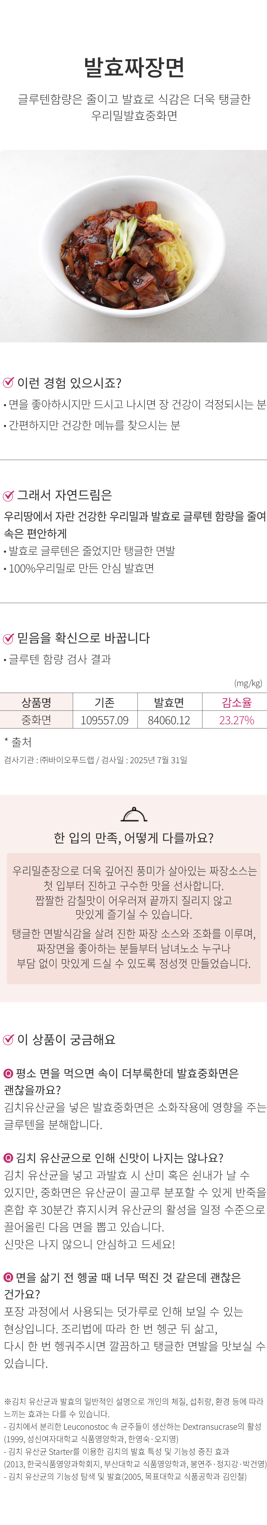 | | 물품특징 | | 1. 괴산자연드림파크 내 면공방에서 직접 생산하여 공급합니다. 2. 깊은바다소금으로 면을 진공반죽하여 쫄깃한 면발이 살아있는 중화면입니다. | | 이용방법 | | 1. 자연해동된 면(1인분)을 흐르는 물에 전분을 헹군 뒤, 끓는 물(800ml, 약4컵)에 약 7분간 삶아줍니다. 2. 팬에 기름을 적당히 두른 후, 양파 200 g과 발효담백살 적당량을 함께 볶아줍니다. 3. 볶은 양파와 발효담백살에 동봉된 발효짜장소스를 부어 1분간 함께 볶아줍니다. 4. 삶은 면은 흐르는 물에 헹구어 물기를 제거하고, 볶은 소스를 넣고 잘 비벼주면됩니다. (기호에 따라 각종 야채를 곁들여 주셔도 됩니다.) | | 생산과정 | | 면 생산: 원료 투입→혼합→반죽→제면→면내포장→소스, 면 조합포장→냉동→출하 | | 기타사항 | | * 이 제품은 메밀, 토마토, 조개류, 돼지고기, 우유, 새우, 알류, 닭고기, 고등어, 땅콩, 게, 이산화황을 사용한 제품과 같은 제조시설에서 제조하고 있습니다. * 이미 냉동된 바 잇으니 해동 후 재냉동시키지 마시기 바랍니다. * 제품 개봉 후 나는 알코올냄새는 식용주정냄새입니다. 인체에 무해하며, 끓는 물에 증발하나 일부 극소량 남아 있을 수 있으니 알코올 냄새와 섭취에 예민하신 분은 주의하셔야 합니다. * 포장이 파손되지 않도록 보관에 유의해 주시고, 개봉 후에는 즉시 조리해 드십시오. * 조리 시 뜨거운 물에 데이지 않도록 조심하십시오. | |