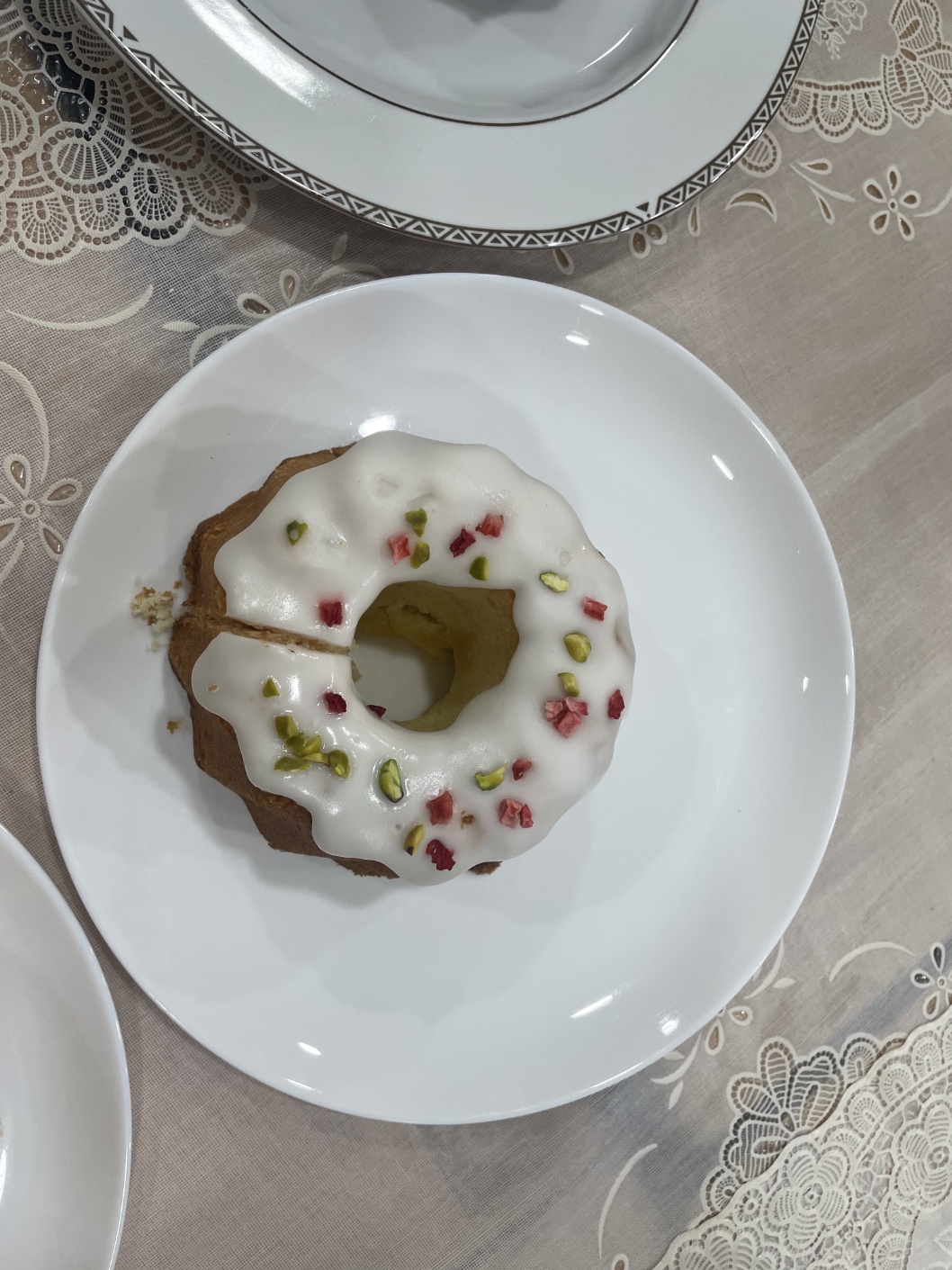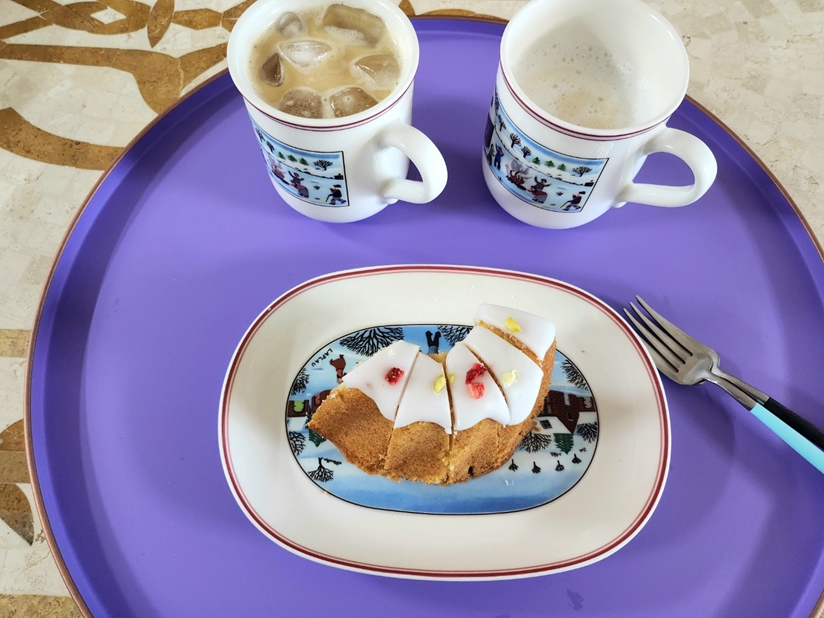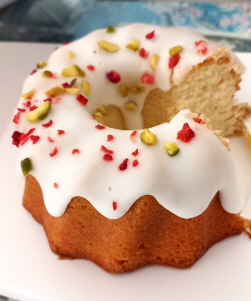 하얀 레몬글레이즈가 올라간 레몬구겔호프의 모습은 마치 겨울의 동산 같습니다.