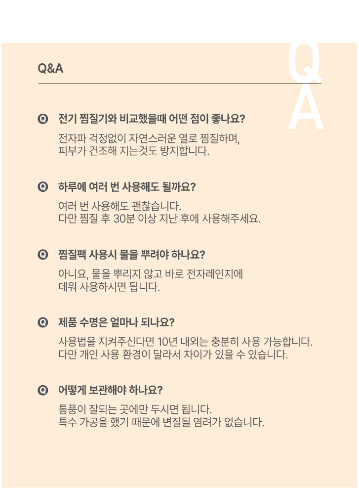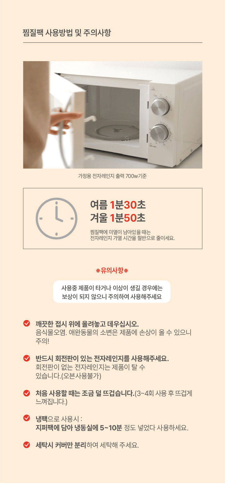 2) 1회 사용 후 미열이 남아 있는 상태에서 다시 사용하실 경우 가열시간을 절반으로 줄여주세요