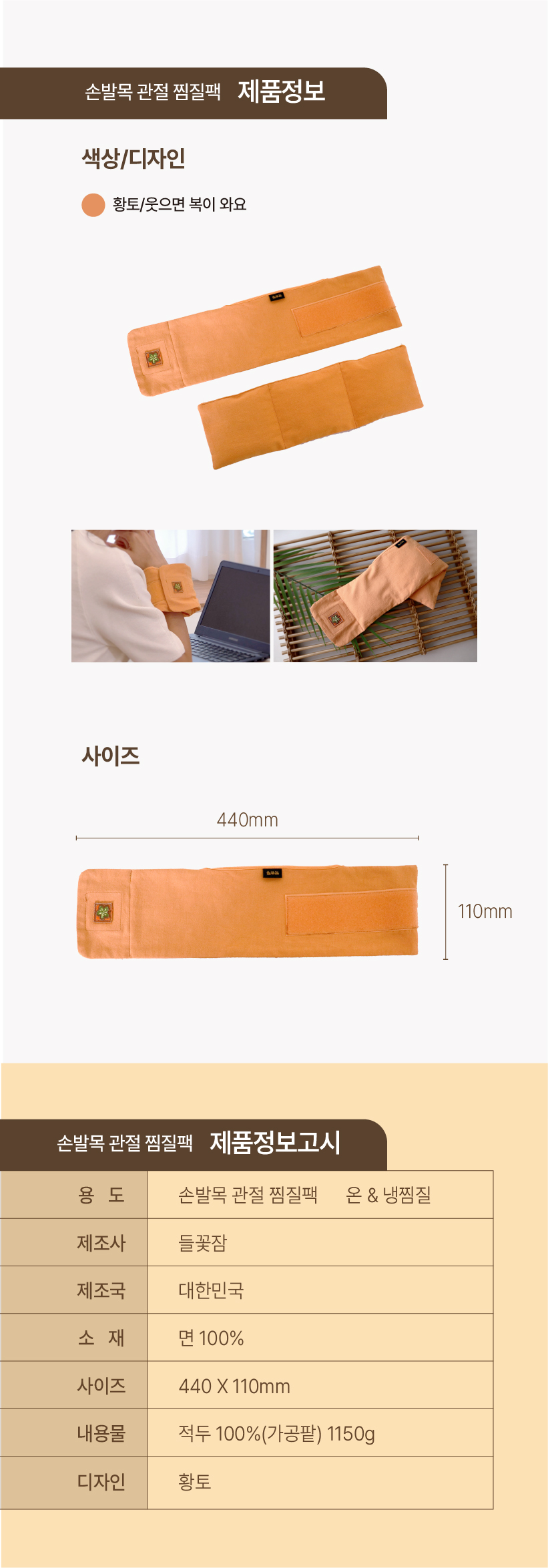 손발목관절찜질팩(낱개)*황토*들꽃잠