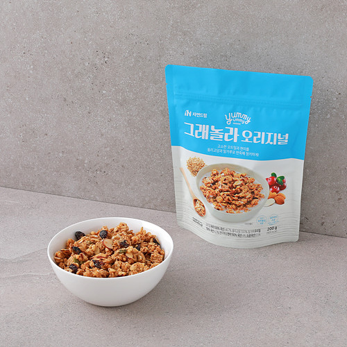 | | | 상품특징 | | 1. 유기농 오트밀과 견과류를 당액과 혼합 반죽 한 후에 오븐에 구워 낸 그래놀라(볶은 곡물, 견과류 등이 들어간 시리얼의 일종) 제품 입니다. 2. 튀기지 않고 오븐에 구워내 더욱 건강하고 맛있습니다. 3. 시리얼 타입이 아닌 두툼하게 뭉쳐진 청크타입(덩어리)으로, 한입 가득 바삭한 식감을 더욱 풍부하게 느낄 수 있습니다. 4. 유기농 곡물(오트밀,현미볶음)과 견과류(아몬드, 호박씨, 해바라기씨)가 들어 있어 더욱 고소합니다. 5. 유기농프락토올리고당과 마스코바도, 유기농설탕, 단풍당시럽, 아카시아꿀로 만든 당액으로 코팅해 과하지 않고 은은한 단맛을 냈습니다. 6. 지퍼백 파우치 형태로 보관 및 이용이 용이합니다.