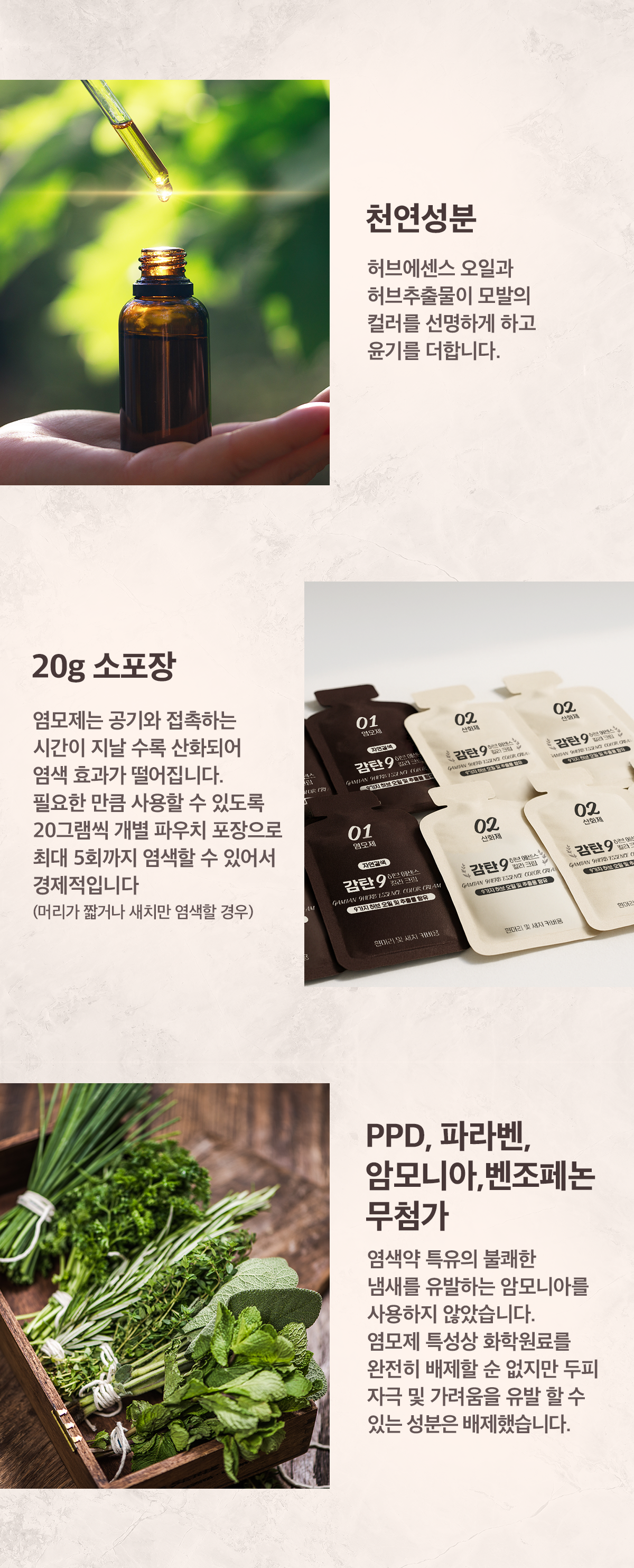 | | | 공급시기 | | 상시공급 | | | 생산지 | | ◼ 제조원 : (주)기린화장품 (충청북도 청주시 흥덕구 오송읍 오송생명1로 10) ◼ 판매원 : (주)오래된미래 (경기도 안양시 동안구 벌말로) | | | 원부재료 | | ◼ 1제 염모제 정제수, 세테아릴알코올, 프로필렌글라이콜, 에탄올아민, 스테아레스-21, 라놀린알코올, 라우레스-2, 미네랄오일, 베헤닐알코올, 스테아레스-2, 황산톨루엔-2, 5-디아민, 라우릴글루코사이드, 폴리쿼터늄-6, p-아미노페놀, 레조시놀, 폴리쿼터늄-10, 트레오닌, 콜레스테롤, 다이소듐이디티에이, 소듐메틸스테아로일타우레이트, 아모다이메티콘, 4-아미노-2-하이드록시톨루엔, 아스코빅애씨드, c12-14sec-알케스-7, 판테놀, 피마자씨오일, 폴리쿼터늄-7, 세라마이드엔피, 소듐클로라이드, 동백나무씨오일, 드럼스틱씨오일, 라벤더오일, 바질오일, 살비아오일, 알란토인, 알지닌, 토코페릴아세테이트, 글리세린, 부틸렌글라이콜, 1,2-헥산다이올, 드럼스틱잎추출물, 뽕나무껍질추출물, 뽕나무열매추출물, 약모밀추출물, 향료 ◼ 2제 산화제정제수, 세테아릴알코올, 하이드로젠퍼옥사이드, 세테아레스-23, 스테아릴스테아레이트, 에티드로닉애씨드, 소듐포스페이트, 포스포락애씨드, 향료 | | | 규격 | | 200ml (1제 염모제 20g*5개, 2제 산화제 20g*5개), 사용설명서 | | | 포장재질 | | 내포장 : 비닐, 외포장 : 종이박스 | | | 소비기한 | | 제조일로부터 36개월 | | | 보관방법 | | 기밀용기, 실온보관 (1도~30도) | |