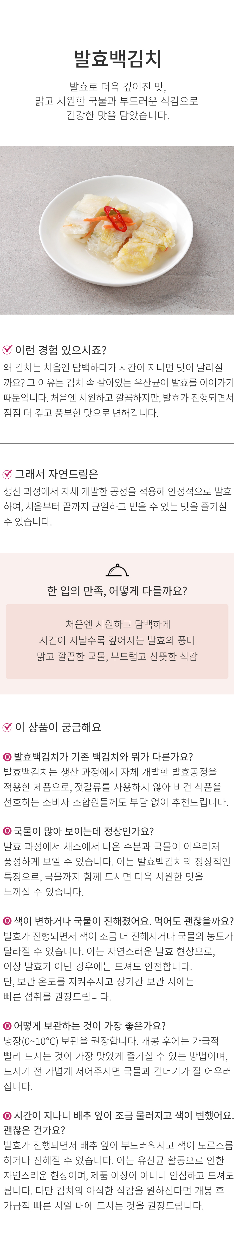 발효절임배추[배추(국산), 소금(국산), 찹쌀풀{정제수, 찹쌀가루(찹쌀:국산)}, 유산균], 정제수, 무(국산), 마늘(국산), 쪽파(국산), 대파(국산), 미나리(국산), 소금(국산), 양파(국산), 홍고추(국산), 당근(국산), 다시마육수(다시마:국산), 배(국산), 사과(국산), 생강(국산), 밤(국산)