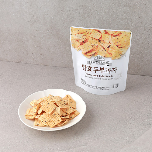 | | | 상품특징 | | 고소함과 부드러운 식감에 발효를 통해 건강까지 생각한 발효두부과자입니다. | | | 생산과정 | | 원료입고 → 선별 → 계량 → 배합 → 반죽 → 발효 → 성형 → 가열(유탕) → 건조 → 종균 도포 → 포장 → 금속검출 → 출고 | | | 이용방법 | | 담백하고 고소하여 어른, 아이들 모두 즐길 수 있는 간식입니다. | | | 기타사항 | | 이 제품은 소고기, 돼지고기, 닭고기, 새우, 게, 오징어, 고등어, 조개류, 땅콩, 호두, 잣, 복숭아, 토마토, 메밀, 아황산류를 사용한 제품과 같은 시설에서 제조하고 있습니다.
