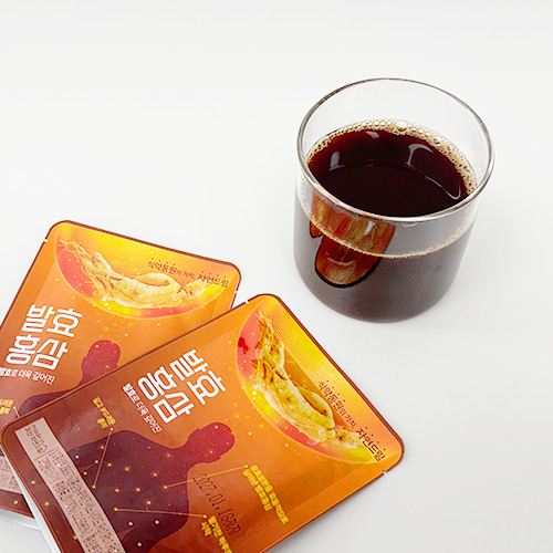 | | | 물품특징 | | .원료 기준 진세노사이드 **11mg/g 이상(원료 기준)**의 고품질 홍삼농축액을 주원료로 사용 .흑마늘, 대추 등 엄선된 부원료를 더해 풍미와 조화를 강화 .효소 및 유산균을 활용한 발효 공정을 통해 홍삼 사포닌을 저분자 형태로 분해 섭취 용이 .설탕 대신 알룰로스 사용으로 칼로리 부담은 줄이고, 쓴맛은 완화 .깊고 진한 맛으로 매일 부담 없이 섭취 가능 | | | 이용방법 | | 1일 1~2회 섭취, 1회 1포 음용 | | | 생산과정 | | 원료계량->발효->교반 ->여과->살균->충진->금속검출->포장->출고 | | | 기타사항 | | . 간혹 침전물이 생길수 있으나 이는 가공과정에서 발생한 원료의 일부이므로 안심하고 이용하시기 바랍니다. . 파우치 포장 그대로 전자렌지에 가열하지 마십시오. | |