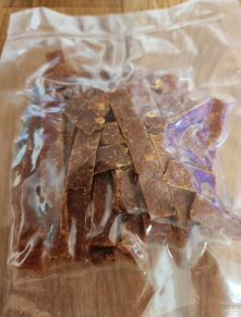 | | | 상품특징 | | 1. 자연드림 돈육을 사용하며, 돈육을 갈아서 만들어 식감이 부드럽습니다. 2. 공정무역 흑통후추를 갈아 매콤한 맛이 특징이며, 흑통후추로 인해 검은 점이 보일 수 있으나 물품에는 이상이 없으니 이용시 참고바랍니다. 3. 유기농조청, 유기농설탕, 매실액 등을 사용하였으며 발색제를 사용하지 않고 포크스틱을 만들었습니다.4. HACCP 인증을 받은 생산지에서 가공합니다. 5. 휴대가 간편하여 야외 활동시 간식으로 이용하시면 좋습니다. | | | 생산과정 | | 원료육 입고 → 원료육 정선 및 절단 → 염지 및 숙성 → 숙성된 원료를 곱게 갈아 성형 → 건조 → 금속검출 → 절단 및 포장 | | | 이용방법 | | 개봉 후 그대로 드시거나, 참기름 등에 찍어 드시면 더욱 맛있습니다. | | | 기타사항 | | 1. 개봉 후에는 변질될 우려가 있으니 바로 드시기 바랍니다. 2. 신선도 유지를 위하여 투입한 탈산소제를 드시지 마시길 바랍니다. 3. 본 상품은 화학적 합성보존료를 넣지 않았기 때문에 유통과정 중 포장지 파손 등에 따라 곰팡이가 발생할 수 있으며, 이를 발견시 소비자상담실로 연락주시기 바랍니다. 4. 이 상품은 알류, 우유, 메밀, 땅콩, 고등어, 게, 새우, 복숭아, 토마토, 아황산류, 호두, 닭고기, 오징어, 조개류(굴, 전복, 홍합 포함), 잣을 사용한 제품과 같은 제조시설에서 제조하고 있습니다.