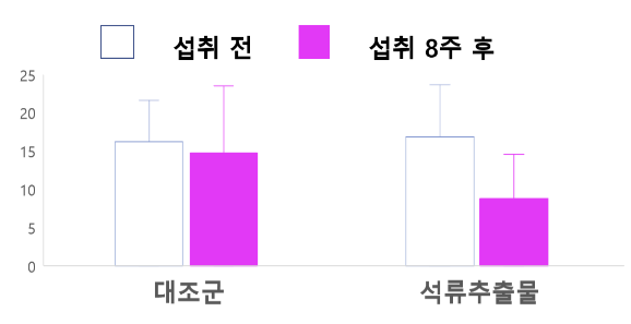 =>석류추출물 섭취 8주 후 MRS 총점 개선 확인.