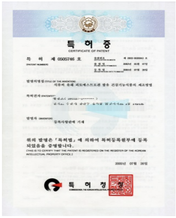 건강기능식품의 제조방법(특허 제0522565 호)