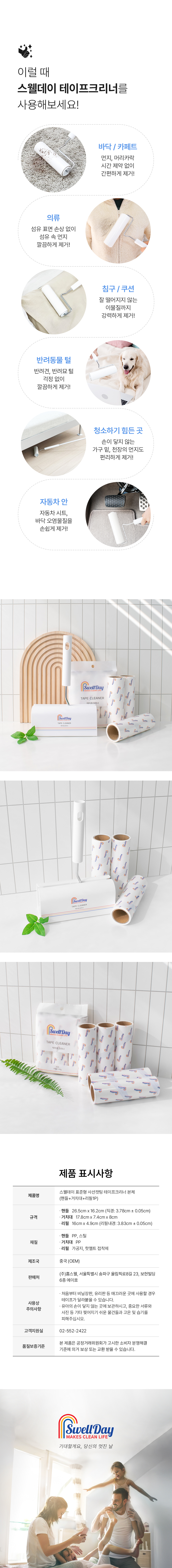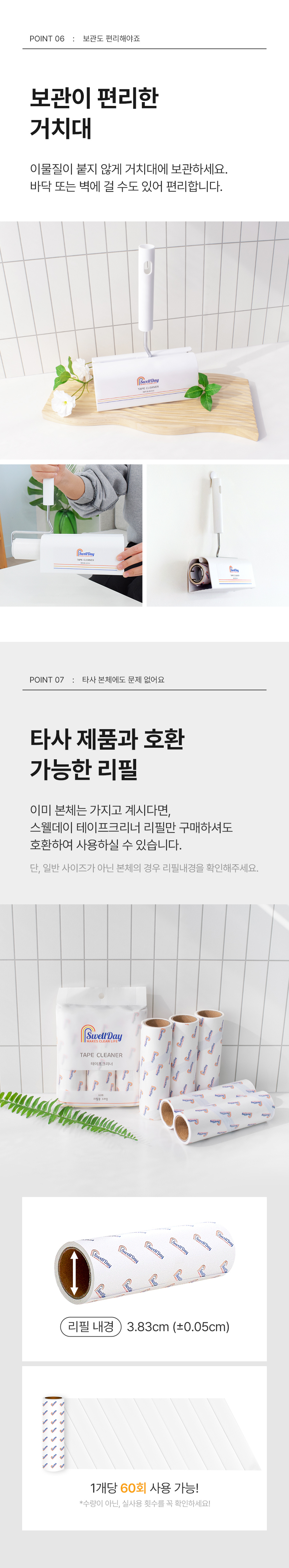 | | | 공급시기 | | 기획공급 | | | 업체명 | | (주)홈스웰 / 서울특별시 강남구 봉은사로 108길 23, 2층 | | | 재질 | | 핸들: PP(폴리프로필렌), 스틸 거치대: 스틸 리필: 가공지, 핫멜트 접착제 | | | 규격 | | 핸들: 25.5cm x 16.2cm(직경: 3.78cm ± 0.05cm) 거치대: 17.8cm x 7.4cm x 8cm 리필: 16cm x 4.9cm(리필 내경: 3.8cm ± 0.05cm) | | | 구성 | | 핸들+거치대+리필 1개(60회분) | | | 제조국 | | 중국 OEM | | | 주의사항 | | 1. 처음부터 비닐장판, 유리판 등 매끄러운 곳에 사용할 경우 테이프가 달라붙을 수 있습니다. 2. 유아의 손에 닿지 않는 곳에 보관하시고, 중요한 서류와 사진 등 기타 찢어지기 쉬운 물건들과 고온 및 습기를 피해주십시오. | |