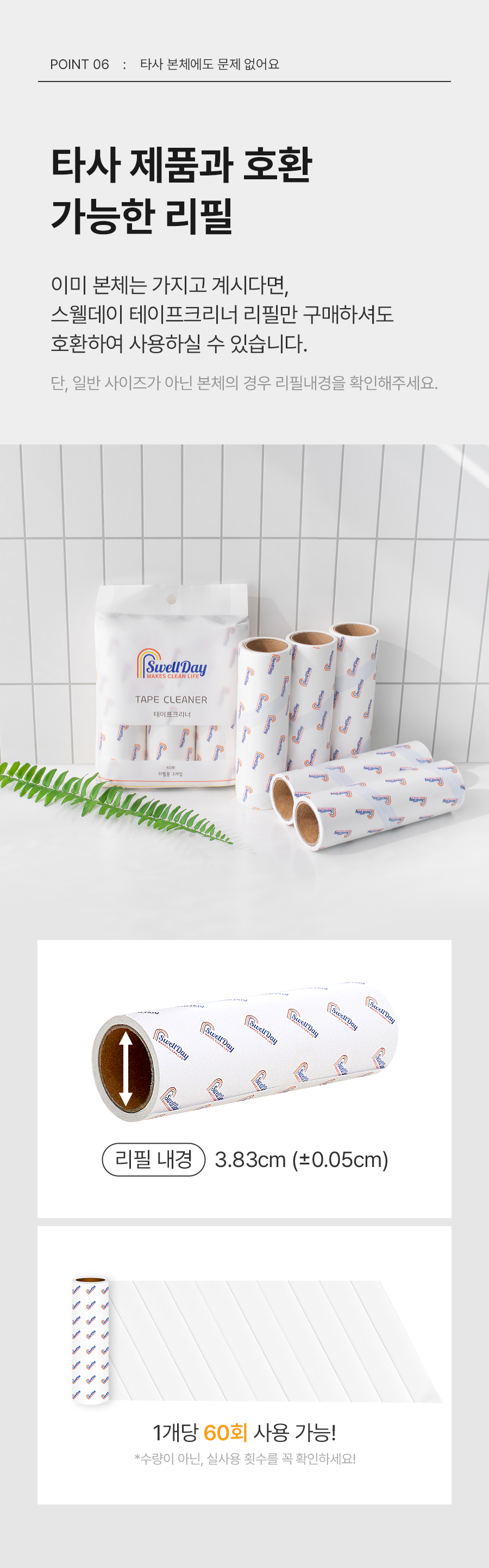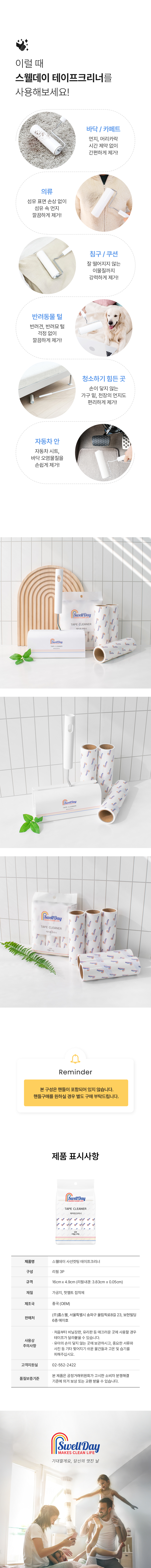 | | | 공급시기 | | 기획공급 | | | 업체명 | | (주)홈스웰 / 서울특별시 강남구 봉은사로 108길 23, 2층 | | | 재질 | | 가공지, 핫멜트 접착제 | | | 규격 | | 리필: 16cm x 4.9cm(리필 내경: 3.8cm ± 0.05cm) X 3개입 | | | 구성 | | 리필 3P | | | 제조국 | | 중국 OEM | | | 주의사항 | | 1. 처음부터 비닐장판, 유리판 등 매끄러운 곳에 사용할 경우 테이프가 달라붙을 수 있습니다. 2. 유아의 손에 닿지 않는 곳에 보관하시고, 중요한 서류와 사진 등 기타 찢어지기 쉬운 물건들과 고온 및 습기를 피해주십시오. | |