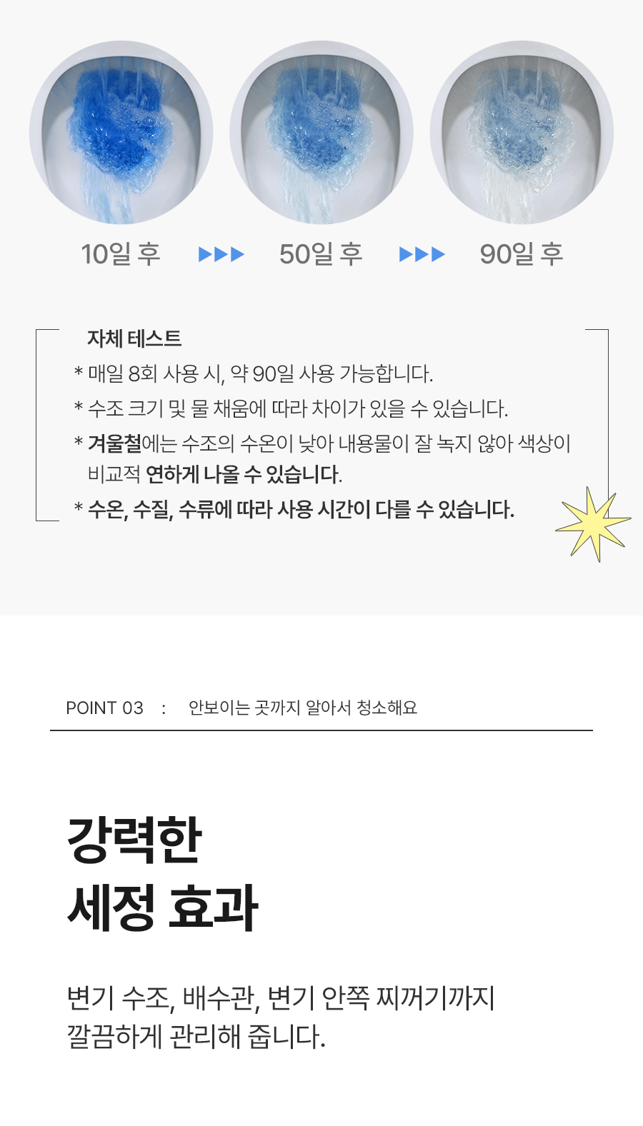 | | | 공급시기 | | 기획공급 | | | 업체명 | | 수입자: (주)홈스웰 / 서울특별시 강남구 봉은사로 108길 23, 2층 | | | 제형/품목/용도 | | 제형: 고체형 품목: 세정제 용도: 일반용(변기용) | | | 규격 및 구성 | | 1개: 220g (3개월 사용 가능) | | | 제조국 | | 제조국: 중국 제조원: 허남성이스다무역유한공사 | | | 사용물질 | | 주요물질 물, 소듐스테아레이트, 에리오글라우신다이소듐염, 폴리옥시에틸렌 스테아르산에스터, 파라빈왁스 계면활성제 소듐스테아레이트(음이온계), 폴리옥시에틸렌스테아르산에스터(비이온계) 기타물질 향료 | | | 사용상 주의사항 | | 상세정보 확인 | |