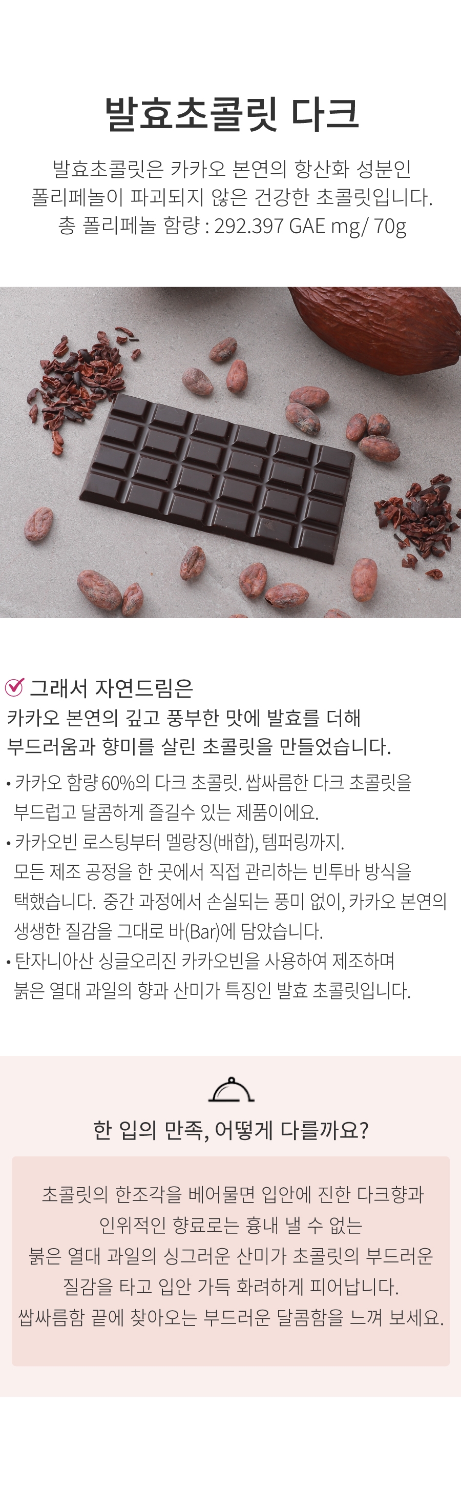 | | | 공급시기 | | 상시공급 | | | 식품유형 | | 초콜릿 | | | 생산지 | | (주) 해명씨앤씨/경기도 여주시 흥천면 은골길 46-10 | | | 원부재료 | | 초콜릿[비정제원당,코코아매스(카카오빈:탄자니아산),코코아버터(말레이시아산,싱가포르산),코코아분말,레시틴],기타가공품1,기타가공품2(대두,우유 함유) | | | | 내용량 | | 70g | | | 포장재질 | | 종이 | | | 소비기한 | | 제조일로부터 1년 | | | 보관방법 | | 실온보관/ 직사광선을 피하여 온도,습도가 낮은 실온에 보관해주십시오. | | | 영양성분표시 | | 총 내용량 70g | | 1개당 | 함 량 | 1일 영양성분 기준치에 대한 비율 | | 열량 | 392 kcal | - | | 탄수화물 | 38 g | 12% | | 당류 | 26g | 26% | | 단백질 | 6g | 11 % | | 지방 | 24g | 44% | | 포화지방 | 23g | 153% | | 트랜스지방 | 0 g | 0% | | 콜레스테롤 | 0 mg | 0% | | 나트륨 | 2 mg | 0% | | 1일 영양성분 기준치에 대한 비율(%)은 2,000kcal 기준이므로 개인의 필요 열량에 따라 다를 수 있습니다. |