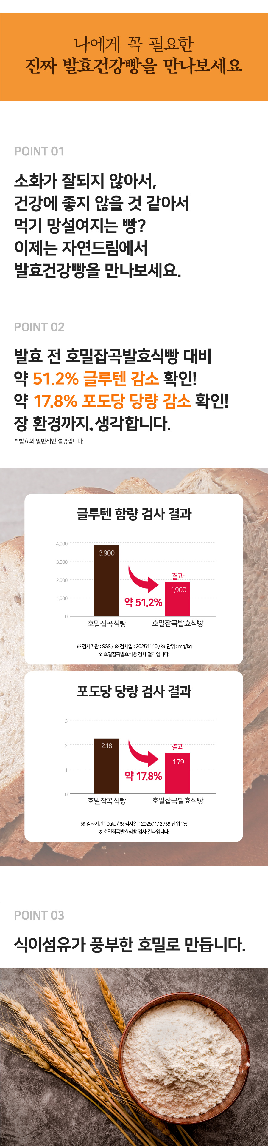 | | | 공급시기 | | 상시공급 | | | 식품유형 | | 빵류 | | | 생산지 | | 1. 생산지명 : 자연웰푸드 베이커리공방 2. 주소 : 전라남도 구례군 용방면 용산로 107-31 | | | 원부재료 | | 밀가루(우리밀/국산)44.1%,호밀분말(호밀/캐나다산)23.3%,콤플릿크라프트브레드50(밀가루,해바라기씨,호밀,아마씨,대두/프랑스산),유기농설탕5.2%,렌틸콩4.1%,자연드림네이처4,곡류가공품,글루텐,효모,쿱네이처2,소금(국산),유산균1,유산균2,당류가공품 [밀,우유,대두 함유] | | | 중량설명 | | 280 g (755 kcal) | | | 포장재질 | | (내면)폴리프로필렌 | | | 소비기한 | | 별도 표기일까지 (제조일로부터 7일까지) | | | 보관방법 | | 1. 실온보관 (1~35℃) 2. 직사광선을 피해 서늘한 곳에 보관하시고 구매 후에는 가급적 빠른 섭취 바랍니다. 3. 바로 섭취 하지 않을 경우에는 냉동 보관 해주시고 냉동 보관한 빵은 먹기 전 상온에서 1~2시간 해동하시면 구매하셨던 상태 그대로 섭취하실 수 있습니다. | | | 영양정보 | | 총 내용량 280 g (755 kcal) / 100 g 당 270 kcal