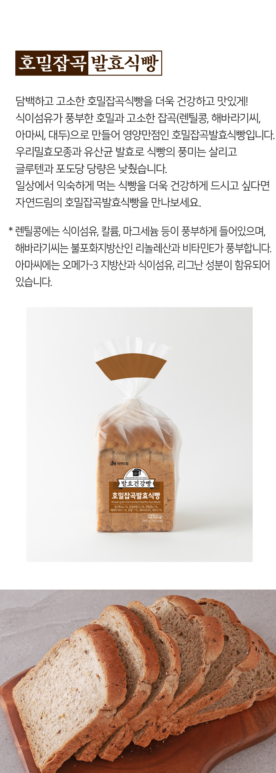 | | | | 물품특징 | | 1. 식이섬유가 풍부한 호밀과 고소한 잡곡(렌틸콩, 해바라기씨,아마씨, 대두)으로 만들어 영양만점인 호밀잡곡발효식빵입니다. 2. 우리밀효모종과 유산균 발효로 빵의 풍미는 살리고 글루텐과 포도당 당량은 낮췄습니다. | | | 이용방법 | | 1. 식빵 그대로 드시거나 토스트기에 구워 간단하게 드시면 좋습니다. 2. 취향에 따라 버터나 크림치즈, 스프레드 등을 발라 드시거나 우유 또는 음료 등과 함께 드시면 더욱 맛있게 즐기실 수 있습니다. 3. 식빵 위에 야채, 햄, 치즈, 과일 등을 올려 샌드위치로 이용하시면 간편 한끼로도 좋습니다. | | | 생산과정 | | 원재료 계량 → 믹싱 및 혼합 → 분할 → 중간 발효 → 성형 → 2차 발효 → 소성 → 냉각 → 슬라이스 → 포장 → 출고 | | | 기타사항 | | 이 제품은 알류, 땅콩, 호두, 토마토, 닭고기, 소고기, 돼지고기,오징어, 조개류, 복숭아, 게, 새우, 고등어, 메밀, 잣을 사용한 제품과 같은 제조시설에서 제조하였습니다. | |