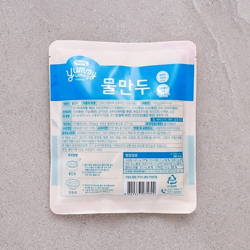 | | | 공급시기 | | 상시공급 | | | 식품유형 | | 만두 [가열하여 섭취하는 냉동식품] | | | 생산지 | | (주)자연드림치유식품 만두앤탕공방 전라남도 구례군 용방면 용산로 107-54 | | | 원부재료 | | 밀가루(우리밀:국산), 무항생제돼지고기(국산)30.7%, 부추(국산), 대파(국산), 두부, 양배추(국산), 양파(국산), 마늘(국산), 감자전분, 글루텐(우리밀:국산), 복합조미식품, 양조간장, 난백분, 소금, 유기농설탕0.4%, 식용유지가공품, 참기름, 생강분말(생강:국산), 흑후추가루 [ 밀, 돼지고기, 대두, 달걀 함유 ] | | | 중량설명 | | 150 g | | | 포장재질 | | 폴리에틸렌(내면) | | | 소비기한 | | 전면 별도표기일까지 (제조일로부터 12개월) | | | 보관방법 | | 냉동보관 / 이미 냉동된 바 있으니 해동 후 재냉동시키지 마시길 바랍니다. | | | 영양성분표시 | |