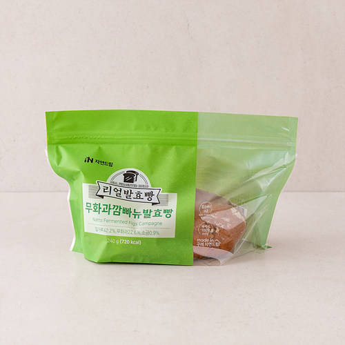| | | 공급시기 | | 상시공급 | | | 식품유형 | | 빵류 | | | 생산지 | | 1. 생산지명 : (주)자연드림치유식품 베이커리공방 2. 주소 : 전라남도 구례군 용방면 용산로 107-31 | | | 원부재료 | | 밀가루(우리밀/국산),무화과(튀르키예산),호밀가루(호밀/독산),호두,자연드림네이처,효모,정제수,유기농설탕1.5%,소금(국산),글루텐,곡류가공품,기타가공품,당류가공품,볶음콩가루,자당지방산에스테르,비타민C,종균 [밀, 호두, 우유, 대두 함유] | | | 중량설명 | | 240 g | | | 포장재질 | | (내면)폴리프로필렌 | | | 소비기한 | | 별도 표기일까지 (제조일로부터 5일까지) | | | 보관방법 | | 1. 실온보관 (1~35℃) 2. 직사광선을 피해 서늘한 곳에 보관하시고 구매 후에는 가급적 빠른 섭취 바랍니다. 3. 바로 섭취 하지 않을 경우에는 냉동 보관 해주시고 냉동 보관한 빵은 먹기 전 상온에서 1~2시간 해동하면 구매했던 상태 그대로 섭취하실 수 있습니다. | | | 영양성분표시 | | 총 내용량 240 g (720 kcal)