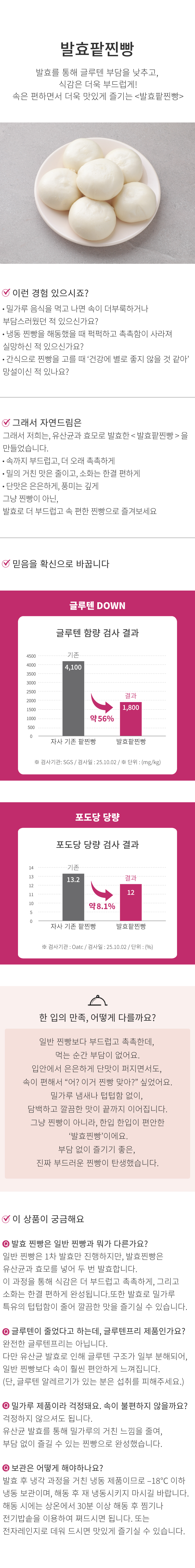 | | | 기타사항 | | -이미 해동된 바 있으니, 해동 후 재 냉동시키지 마시길 바랍니다. - 조리후 찐빵이 뜨거우므로 취급시 주의하시기 바랍니다. - 본 제품은 쇠고기, 닭고기, 돼지고기, 고등어, 땅콩, 잣, 메밀, 호두, 복숭아, 토마토, 새우, 게, 오징어, 알류, 조개류(굴,바지락), 아황산류를 사용한 제품과 같은 제조시설에서 제조하고 있습니다.