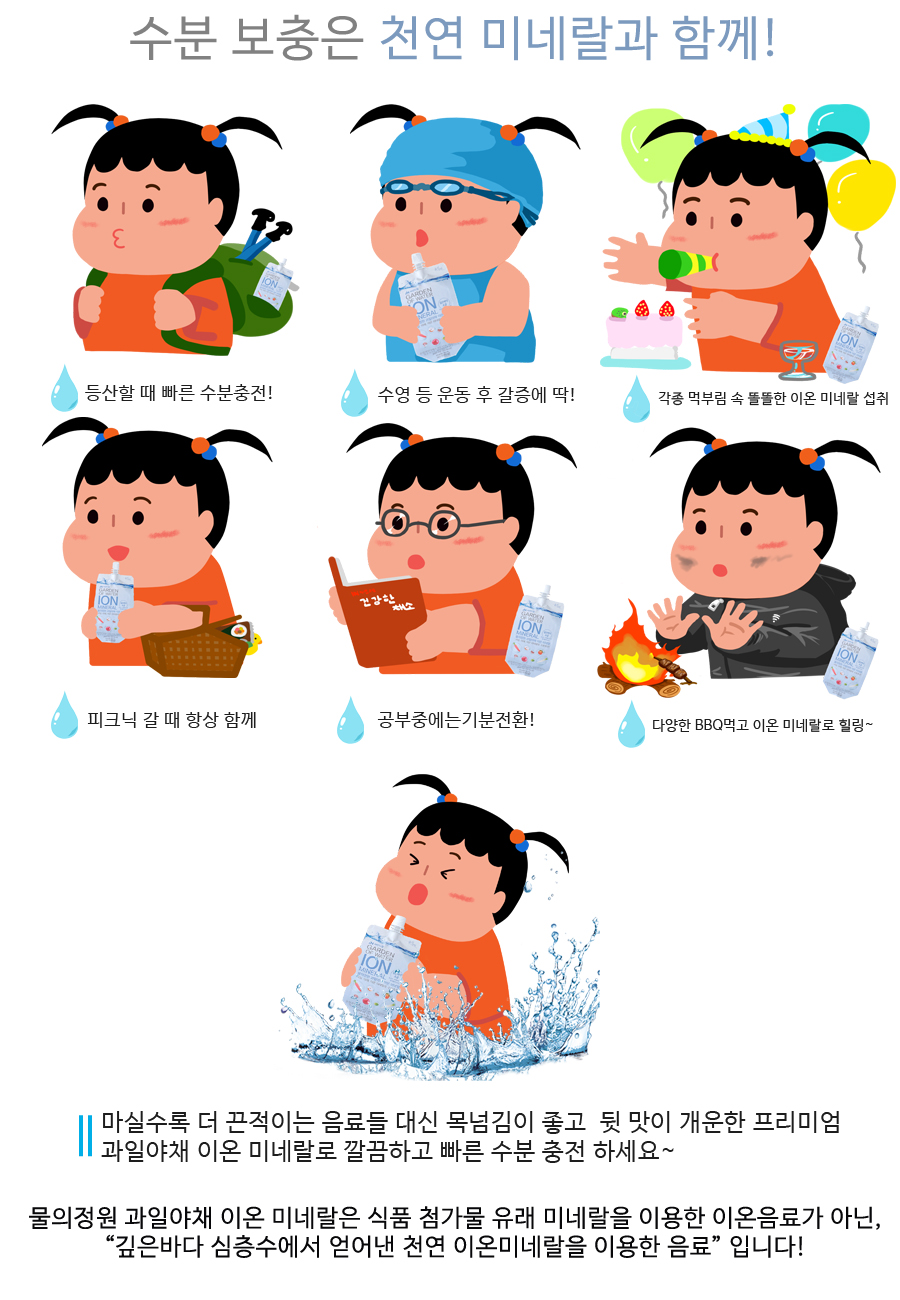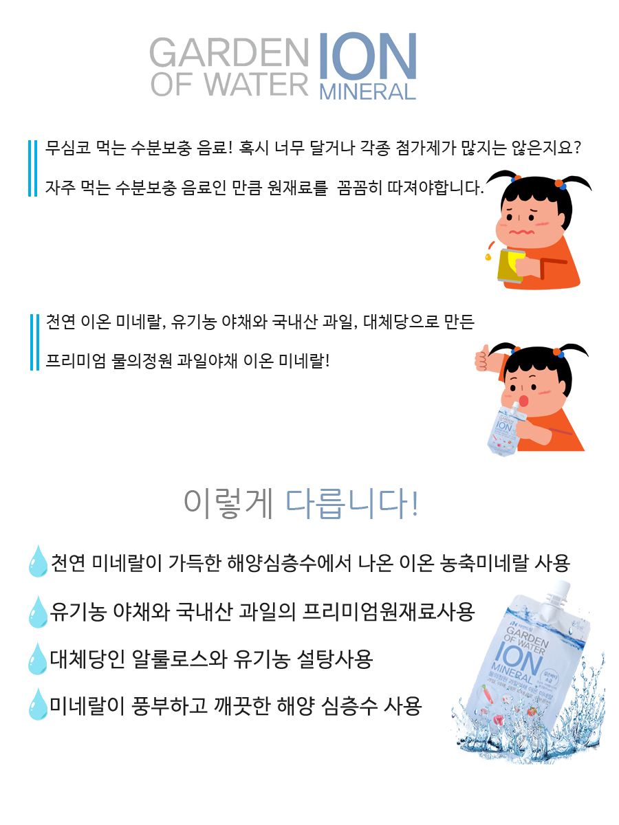 천연이온미네랄, 유기농야채와 국내산과일, 대체당으로 만든 프리미엄 음료 물의정원 과일야채이온미네랄