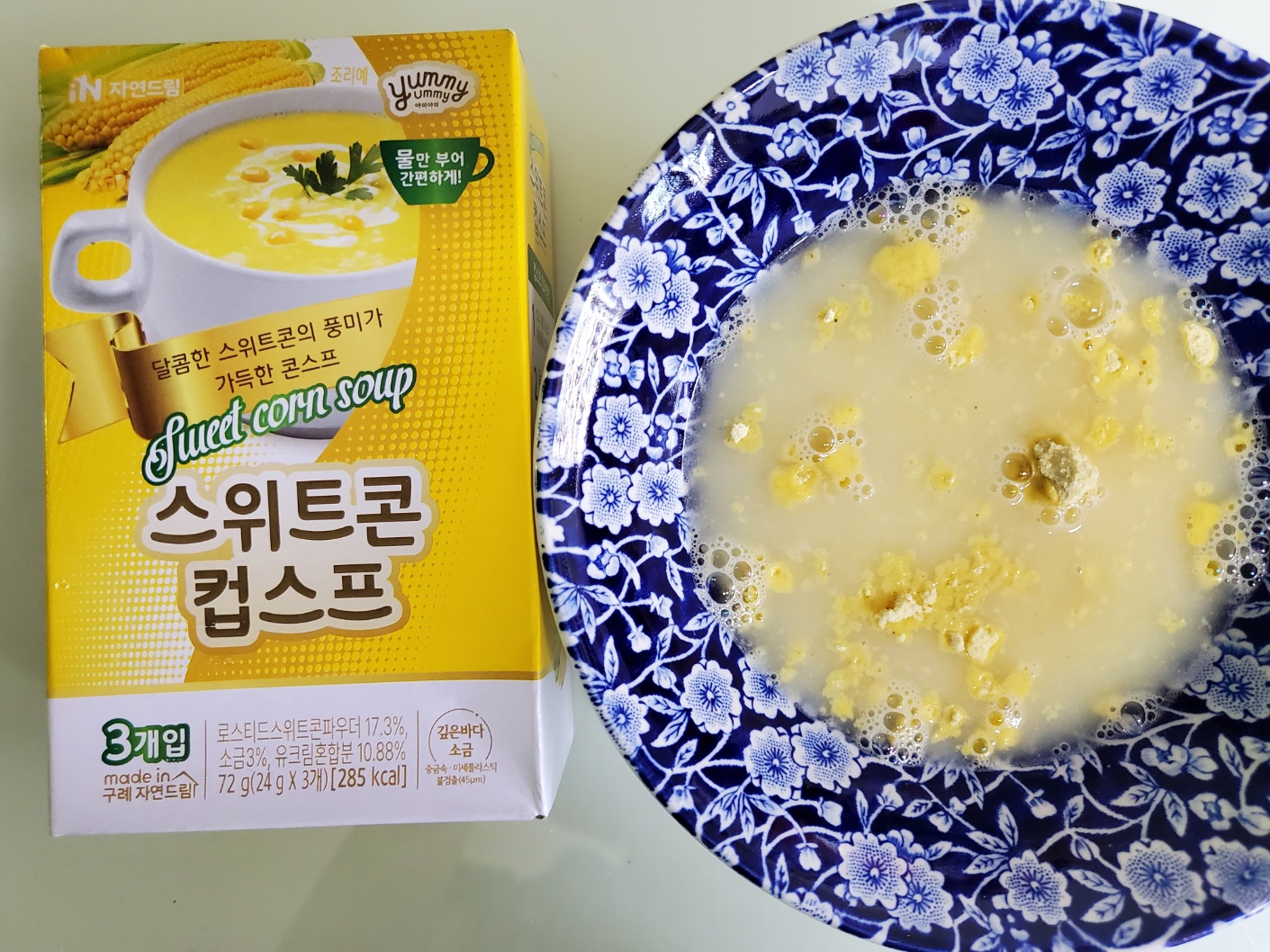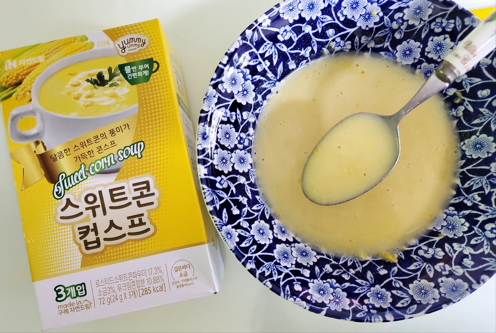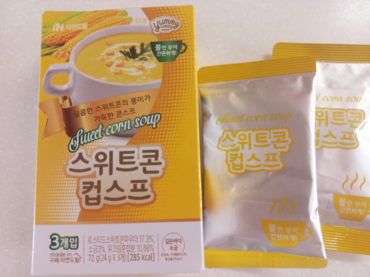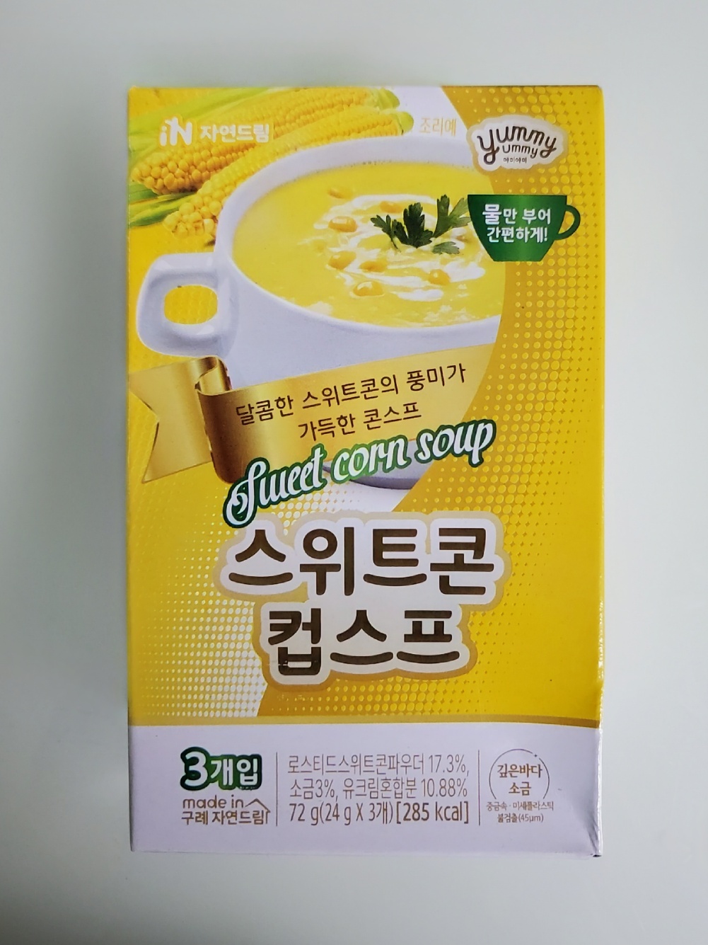 | | | 물품특징 | | 1. 옥수수 특유의 달콤함과 고소함을 즐길 수 있습니다. 2. non-gmo 옥수수를 사용하여 더욱 안심할 수 있습니다. 3. 미세플라스틱(기준:45μm)이 검출되지 않은 소금만 사용합니다. | | | 이용방법 | | 1. 스프 1봉(24g)의 내용물을 컵에 넣습니다. 2. 끓는 물(95°C ~ 100°C) 150ml를 붓습니다. 3. 잘 저은 후, 1분 후에 드시면 더욱 맛있습니다. * 조리 및 음용 시 끓는 물에 데지 않게 주의하십시오. * 물 온도가 낮을 시 스프 점성이 묽을 수 있습니다. | | | 생산과정 | | 원료점검 및 계량 -> 원료투입 및 혼합 -> 스틱포장 -> 외포장 | | | 기타사항 | | ∙ 개봉 후에는 가급적 빨리 사용하시고 남은 제품은 벌레, 이물, 곰팡이 등에 오염되지 않도록 꼭 밀봉하여 냉장보관 하십시오. ∙ 본 제품은 달걀, 메밀, 땅콩, 새우, 돼지고기, 복숭아, 토마토, 호두, 쇠고기, 조개류, 잣을 사용한 제품과 같은 제조시설에서 제조하고 있습니다. | |
