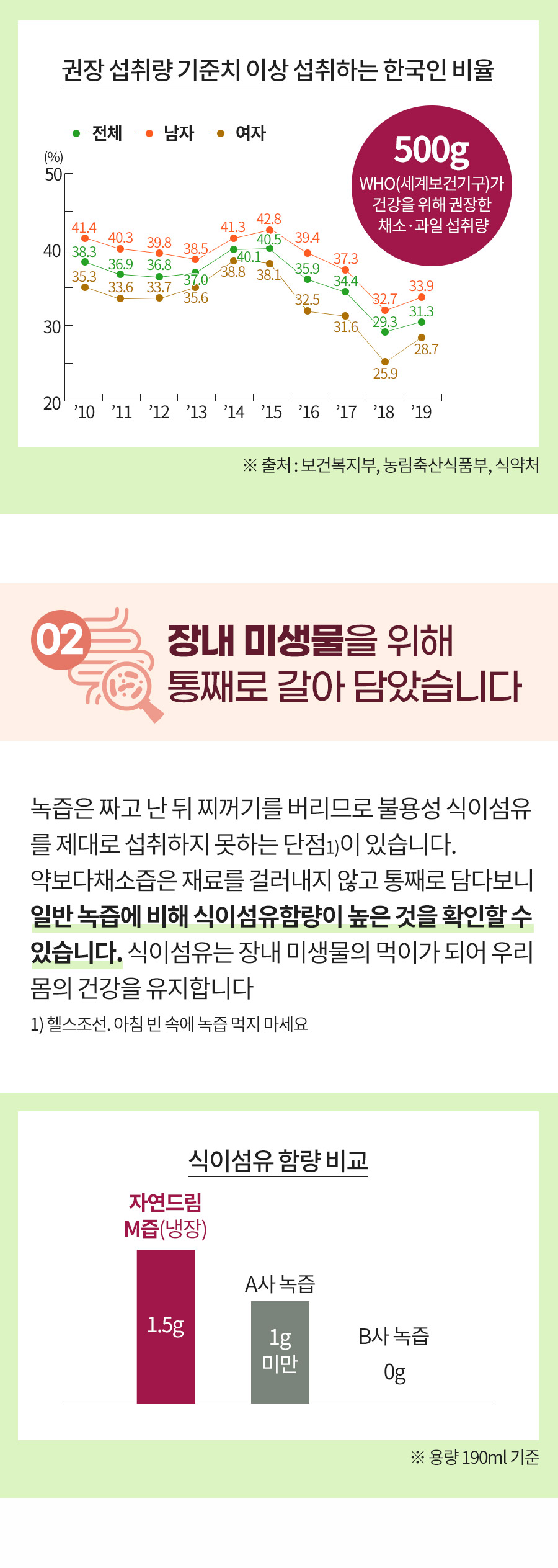 | | | 공급시기 | | 상시공급 | | | 식품유형 | | 과.채가공품(가열하지 않고 섭취하는 냉동제품) | | | 생산지 | | ㈜쿱농산김치 전라남도 구례군 용방면 용산로 107-42 | | | 원부재료 | | 숨[배농축액(배/국산), 치커리뿌리추출물(치커리뿌리/외국산), 사과농축액(사과/국산), 오렌지농축액, 브로콜리농축액], 당근(국산), 사과(국산), 먹는해양심층수, 비트(국산), 양배추(국산), 브로콜리(국산), 연근(국산), 배(국산), 시금치(국산), 케일(국산), 치커리(국산), 셀러리(국산), 새싹보리가루(국산), 부추(국산), 다시마가루(국산), 볶은현미가루(국산), 양파(국산)