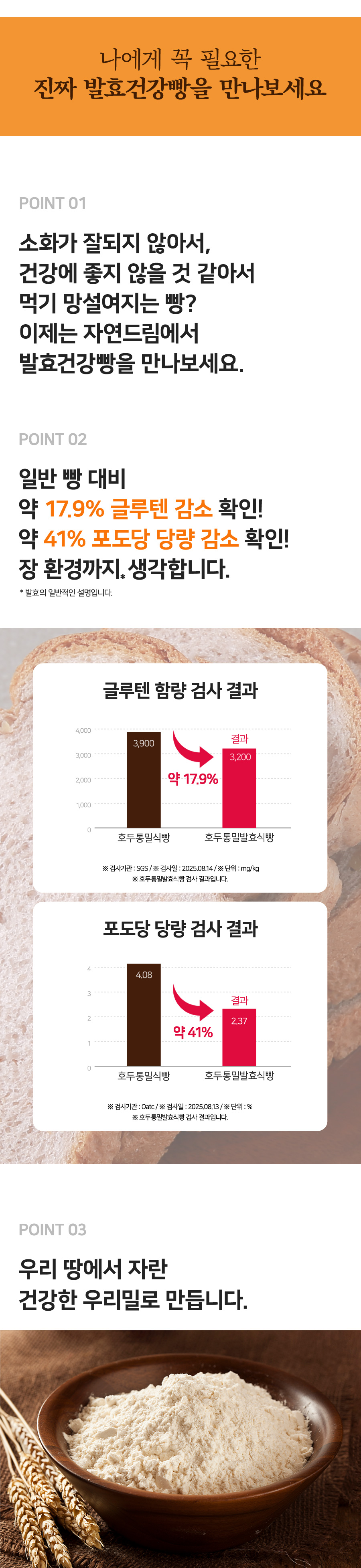 | | | | 물품특징 | | 1. 베이커리 인기식빵인 호두통밀식빵을 더욱 건강하고 맛있게 만들었습니다. 2. 속까지100% 우리밀과 우리밀효모종으로 만들어 식빵의 풍미가 살아있습니다. 3. 유산균 발효로 글루텐 약 17.9%, 포도당당량 약 41%가 감소되어 장 환경까지 생각했습니다. | | | 이용방법 | | 1. 식빵 그대로 드시거나 토스트기에 구워 간단하게 드시면 좋습니다. 2. 취향에 따라 버터나 크림치즈, 스프레드 등을 발라 드시거나 우유 또는 음료 등과 함께 드시면 더욱 맛있게 즐기실 수 있습니다. 3. 식빵 사이에 야채, 햄, 치즈, 과일 등을 올려 샌드위치로 이용하시면 한끼식사로 좋습니다. 4. 낫또를 얹어 드시면 낫또 특유의 풍미를 더욱 진하게 느끼실 수 있습니다. | | | 생산과정 | | 원재료 계량 → 믹싱 및 혼합 → 분할 → 중간 발효 → 성형 → 2차 발효 → 소성 → 냉각 → 슬라이스 → 포장 → 출고 | | | 기타사항 | | 이 제품은 알류, 토마토, 닭고기, 소고기, 돼지고기, 오징어, 복숭아, 게, 새우, 고등어, 메밀, 잣, 땅콩, 조개류를 사용한 제품과 같은 제조시설에서 제조하였습니다. | |