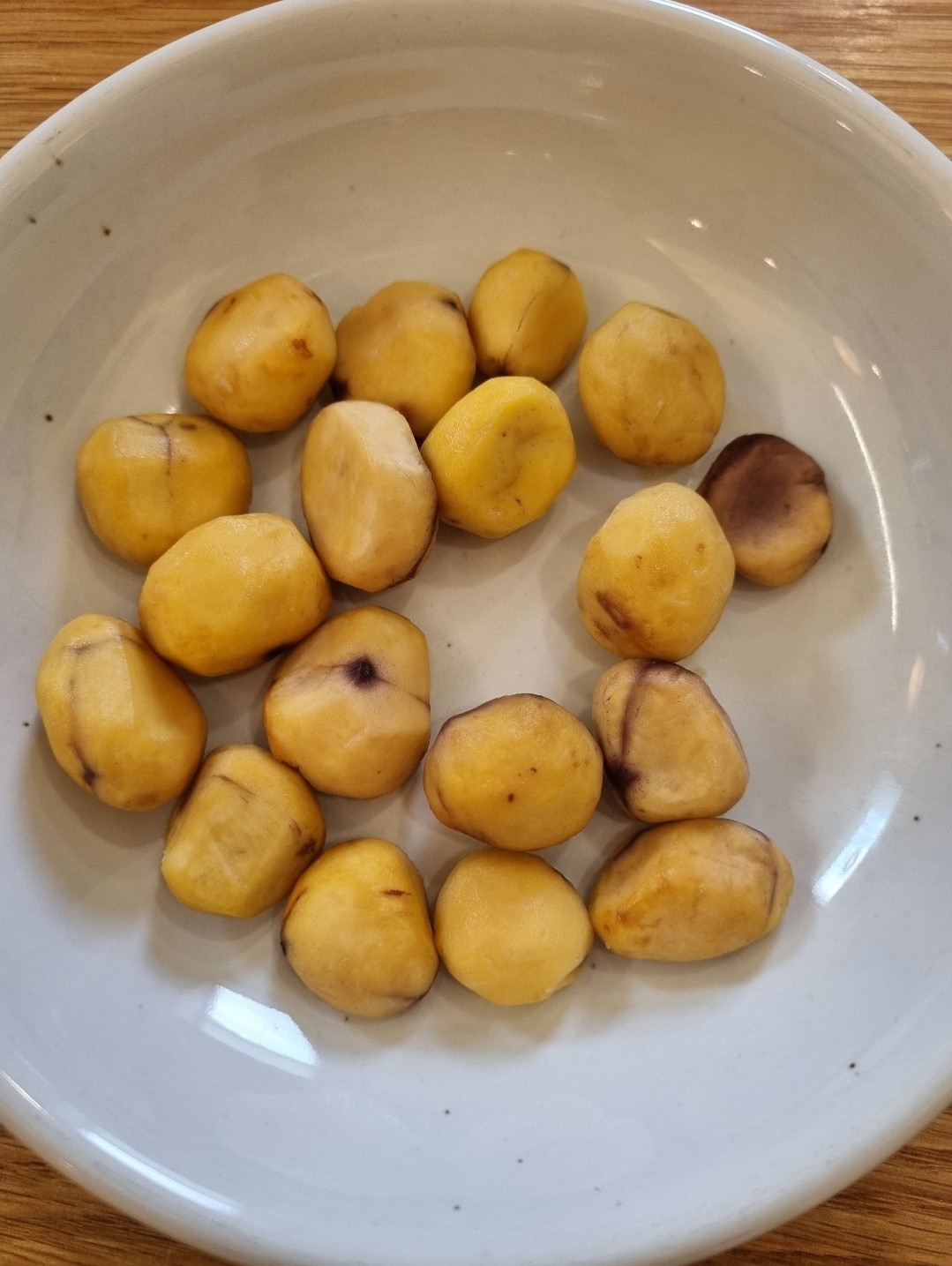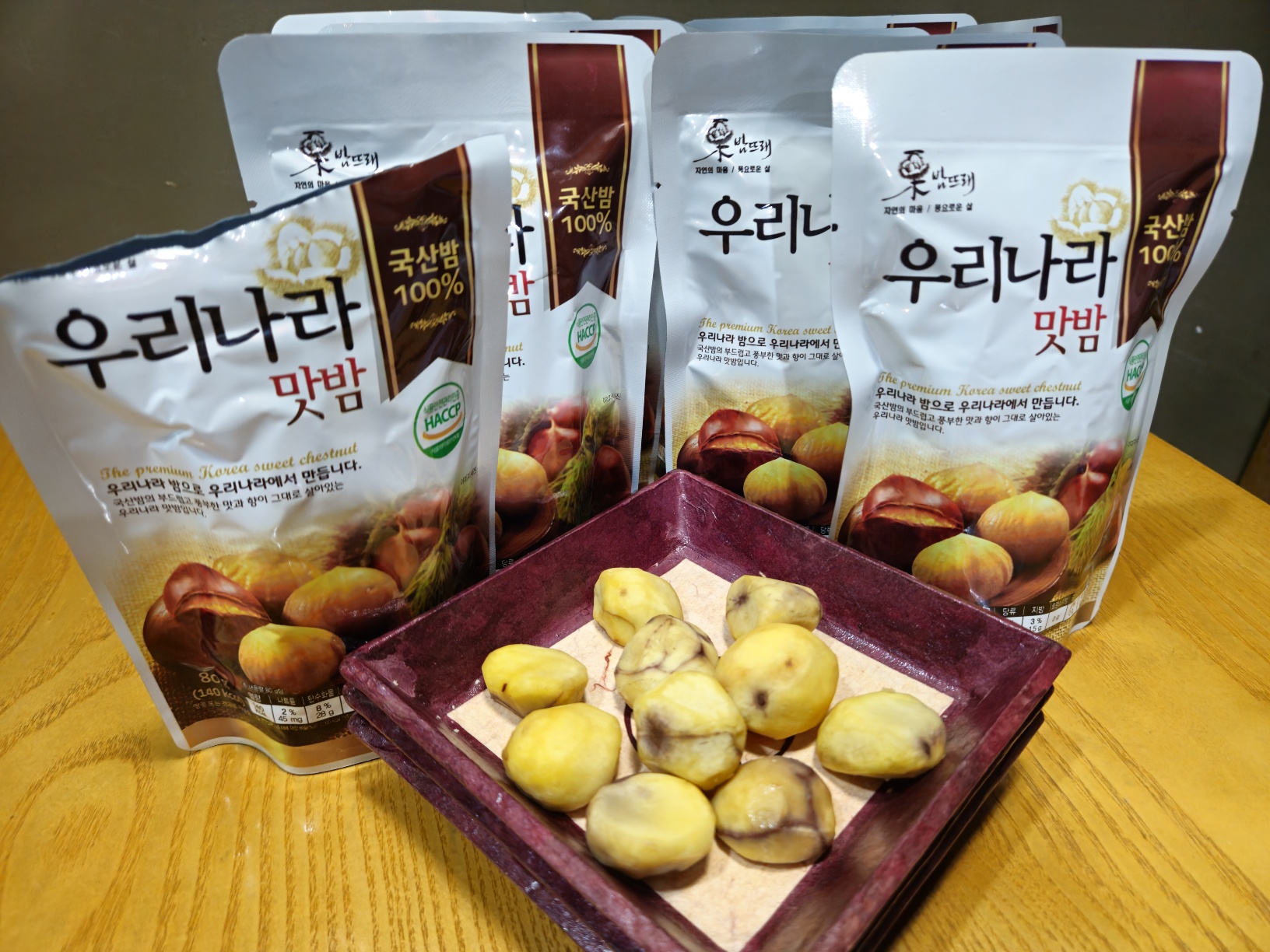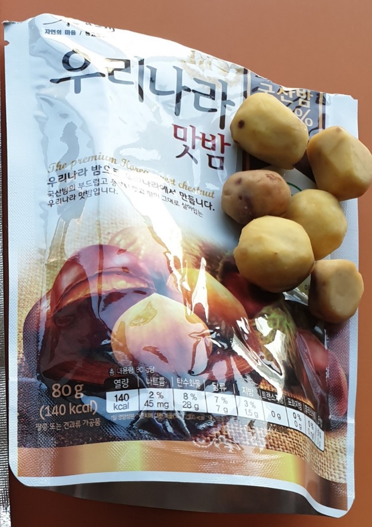 | | | 물품특징 | | 국산 밤 100%를 멸균처리한 제품입니다. 제품이 깨져있는 경우 혹은 수분, 끈적임은 밤 고유성분이므로 안심하고 드십시오. 밤 표면의 검은 부분은 밤 내피의 일부분이거나 레토르트 과정에서 내부의 '탄닌' 성분이 표면에 용출되 나타난 현상 으로 섭취해도 무해하오니 안심하고 드시기 바랍니다. | | | 생산과정 | | 박피 (내/외 제거) → 선별/세척 → 건조 → 포장 → 레토르트 (멸균)→ 제습/박싱 | | | 이용방법 | | 간식으로 드시면 좋습니다. 불 또는 오븐 등에 구워드시면 독특한 밤맛을 느낄 수 있습니다.