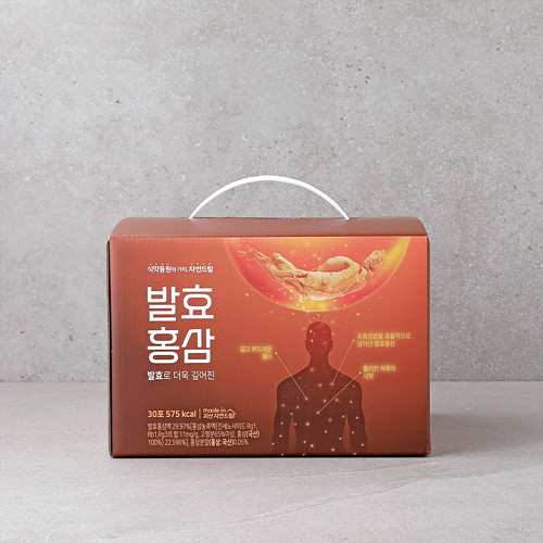 | | | 물품특징 | | .원료 기준 진세노사이드 **11mg/g 이상(원료 기준)**의 고품질 홍삼농축액을 주원료로 사용 .흑마늘, 대추 등 엄선된 부원료를 더해 풍미와 조화를 강화 .효소 및 유산균을 활용한 발효 공정을 통해 홍삼 사포닌을 저분자 형태로 분해 섭취 용이 .설탕 대신 알룰로스 사용으로 칼로리 부담은 줄이고, 쓴맛은 완화 .깊고 진한 맛으로 매일 부담 없이 섭취 가능 | | | 이용방법 | | 1일 1~2회 섭취, 1회 1포 음용 | | | 생산과정 | | 원료계량->발효->교반 ->여과->살균->충진->금속검출->포장->출고 | | | 기타사항 | | . 간혹 침전물이 생길수 있으나 이는 가공과정에서 발생한 원료의 일부이므로 안심하고 이용하시기 바랍니다. . 파우치 포장 그대로 전자렌지에 가열하지 마십시오. | |