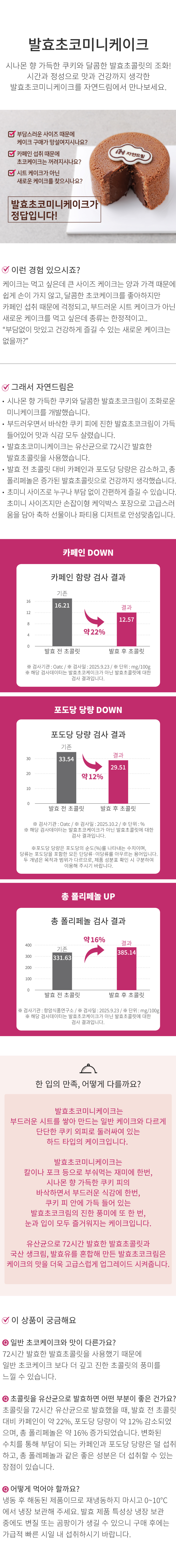 | | | | 물품특징 | | 1. 시나몬 향 가득한 쿠키와 달콤한 발효초코크림이 조화로운 미니케이크입니다. 부드러우면서 바삭한 쿠키 피에 진한 발효초코크림이 가득 들어있어 맛과 식감 모두 살렸습니다. 2. 발효초코미니케이크는 유산균으로 72시간 발효한 발효초콜릿을 사용했습니다. 발효 전 초콜릿 대비 카페인과 포도당 당량은 감소하고, 총 폴리페놀은 증가된 발효초콜릿으로 건강까지 생각했습니다. 3. 초미니 사이즈로 누구나 부담 없이 간편하게 즐길 수 있습니다. | | | 이용방법 | | 1. 케익에 둘러져 있는 띠지는 제거한 후 이용해주시기 바랍니다. 2. 뒤집어져 있는 케익 형태 그대로 칼이나 포크로 잘라드시면 됩니다. 3. 기호에 따라 우유 또는 커피 등 음료와 함께 드시면 더욱 맛있는 디저트로 즐기실 수 있습니다. 4. 케익박스에 동봉되어있는 리본 끈을 손잡이에 묶어주시면 고급스러운 선물용으로 이용하실 수 있습니다. | | | 생산과정 | | 1. 시나몬쿠키 생산 : 원재료 계량 → 믹싱 → 반죽 → 성형 → 소성 → 쿨링 2. 발효초코크림2 생산 : 발효초콜릿 선 발효 → 원재료 계랑 → 생크림 및 원재료 혼합 3. 발효초코미니케이크 생산 : 시나몬쿠키 분쇄 → 반죽 → 쿠키 틀 성형 → 냉동 → 발효초코크림2 충진 → 냉동 → 초콜릿 사인판 장식 → 포장 → 냉동 보관 → 해동 → 출고 | | | 기타사항 | | 1. 이 제품은 땅콩, 호두, 메밀, 잣, 고등어, 게, 새우, 복숭아, 토마토, 닭고기, 쇠고기, 오징어, 조개류를 사용한 제품과 같은 제조시설에서 제조하고 있습니다. | |