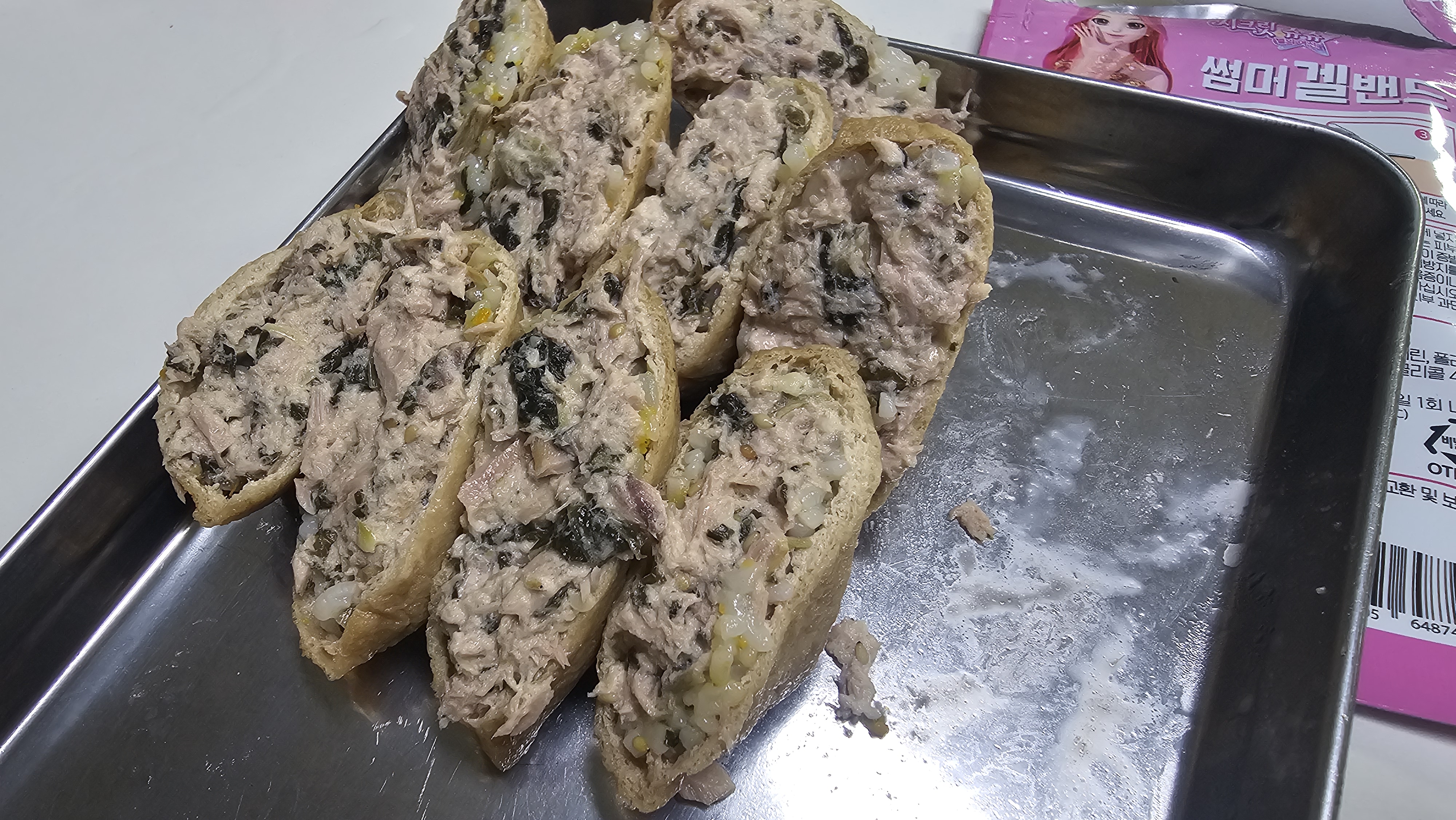 | | | 상품특징 | | - HACCP 인증을 받았습니다. - 안전성 검사(GMO검사, 잔류농약검사, 곰팡이독소검사)를 마친 국산콩을 사용하였습니다. - 튀김유로 자연드림압착유채유를 사용합니다. - 유부초밥용 소스가 함께 들어있습니다. | | | 생산과정 | | 1. 국산 우리콩을 깨끗한 물로 씻어 불립니다. 2. 불린 콩을 마쇄하여 가열합니다. 3. 여과기를 사용하여 두유와 비지로 분리합니다. 4. 분리된 두유에 응고제를 넣습니다. 5. 성형틀에 넣어 압착합니다. 6. 적당한 크기로 잘라 자연드림 압착유채유에 튀깁니다. 7. 유부에 조미액이 충분히 스며들게 담근 후 포장 및 살균합니다. 8. 유부초밥용 소스와 함께 포장 후 냉장 보관합니다. | | | 이용방법 | | 1. 유부포장팩에 들어있는 조미액은 따라낸 후 유부피를 살짝 짜냅니다. (너무 많이 짜내면 제 맛이 나지 않을 수 있습니다.) 2. 고슬고슬 지은 따뜻한 밥에 동봉된 유부초밥용 소스를 넣고 골고루 섞습니다. (기호에 따라 다진 쇠고기, 우엉, 참깨, 당근, 대파 등을 넣으면 더욱 좋습니다.) 3. 초밥을 둥글게 뭉쳐 유부 속에 넣고 예쁘게 담아냅니다. | | | 기타사항 | | 개봉 후에는 변질의 우려가 있으니 빨리 드시는 것이 좋습니다. | |
