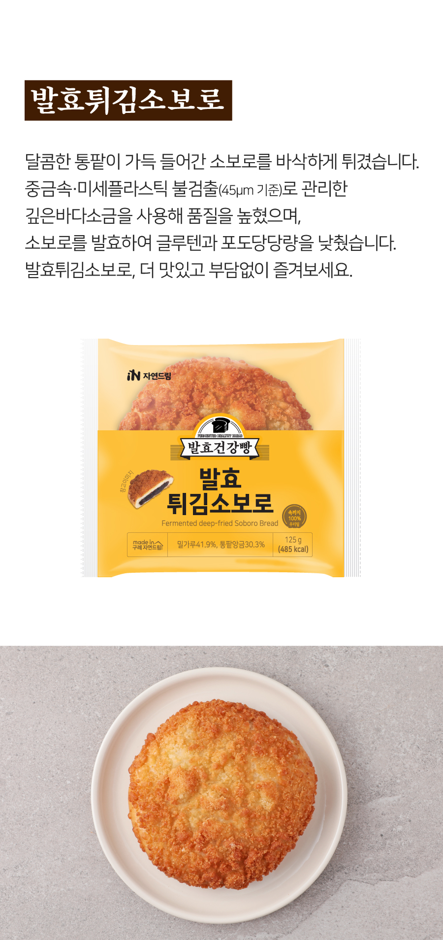 | | | | 물품특징 | | 유산균으로 발효한 반죽을 이용하여, 맛은 유지하고 글루텐을 낮춘 단팥소보로를 바삭하게 튀겼습니다. 집에서 간편하게 먹을 수 있는 발효튀김소보로!! 구매하러 먼 길 다녀올 필요가 없습니다. (완제품 기준: 글루텐 36.1% 감소) | | | 이용방법 | | [ 맛있게 먹는 레시피 ] 예열된 에어프라이어 180℃에서 3분간 조리해 드시면 바삭한 식감의 발효튀김소보로를 즐기실 수 있습니다. | | | 생산과정 | | 원재료 선별 → 원재료해동 → 유탕 → 쿨링 → 엑스레이검사 및 품질검수 → 출고 | | | 기타사항 | | 이 제품은 쇠고기, 돼지고기, 땅콩, 잣, 호두, 새우, 오징어, 토마토, 아황산류를 사용한 제품과 같은 제조시설에서 제조하였습니다. | |