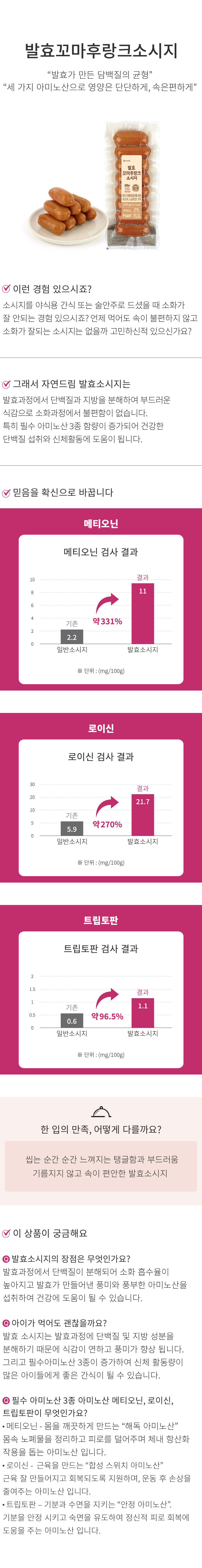 | | | 물품특징 | | 1. 괴산자연드림파크 건강한한우 미토리 1공빙에서 생산합니다. 2. 국산 자연드림 돈육으로 탱글탱글한 식감을 살렸습니다. 3. 보존료,발색제,인산염 등 합성첨가물을 일절 사용하지 않았습니다. 4. 발효과정중 지방 분해가 이루어져 더 가볍고 건강한 맛