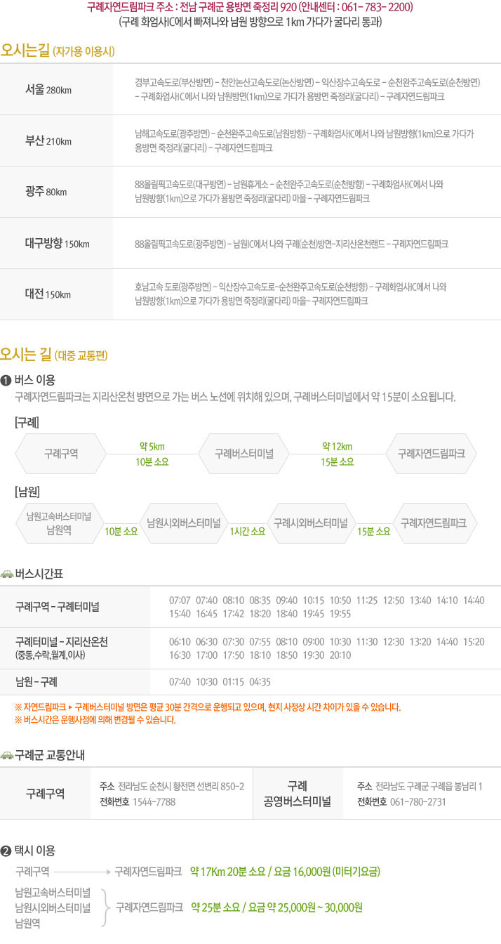 > 구례 자연드림파크 > 찾아오시는길