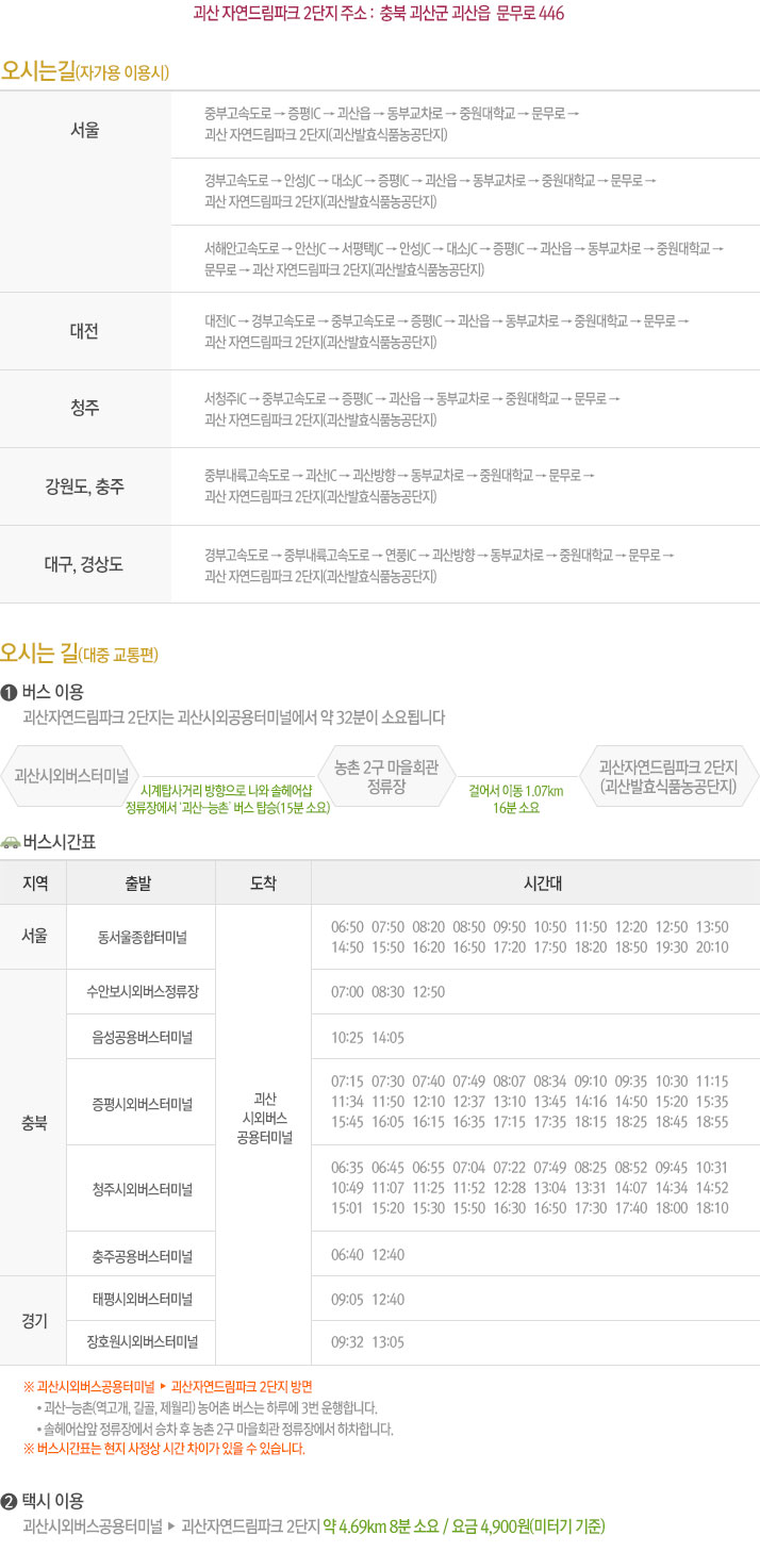 > 괴산 자연드림파크 2단지 > 찾아오시는길