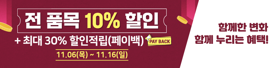 전 품목 10% 할인에 최대 30% 페이백까지.