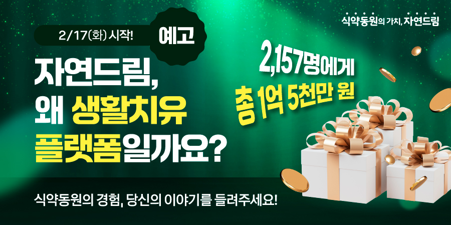 - 자연드림에 관심있는 누구나! (응모를 위한 회원 가입 필요) *동점 발생 시 조합원 가산점 부여(심사일 기준)