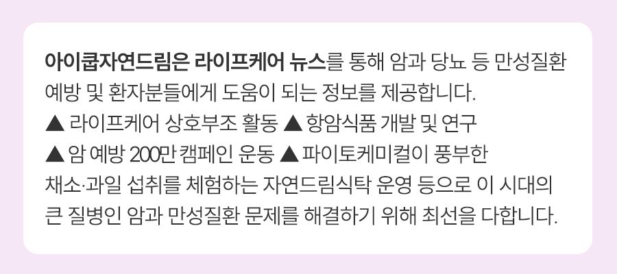 ![]() 여성 암 발병률 1위 유방암. 2020년 기준 신규 유방암 환자는 24,806명으로 국내 유방암 환자는 20년째 매년 꾸준히 증가하고 있다고 합니다. 유방암은 다른 암보다 5년 상대생존율(98.9%)이 높지만, 까다로운 암이라고 하는데요. 생존하더라도 오랫동안 전이될 위험이 있어서 치료 후에도 꾸준한 관리가 필요하기 때문입니다. 폐경 후 살찌면 유방암 위험 높아진다? 폐경은 여성의 대부분이 겪습니다. 인생의 한 단계를 완성했다는 뜻으로 ‘완경’이라 부르기도 하는데요. 폐경 후 살이 찌게 되면 유방암 발병 위험이 더 커진다고 합니다. 삼성서울병원 연구팀에 따르면 정상체중군 사람들보다 과체중은 11%, 비만 28%, 고도비만의 경우 54%나 암이 생길 위험이 더 높았다고 합니다. 사람의 수면과 각성은 일정한 주기를 가지고 반복된다고 합니다. 이것을 일주기성 리듬이라고 부르는데요. 비만은 일주기성 리듬에 악영향을 주기 때문에 인슐린 저항성을 높이고, 암과 같은 일부 만성 질환의 위험을 증가시킬 수 있다고 합니다. 시간제한섭식 비만에 의한 유방암 위험 낮춰 최근 간헐적 단식의 한 종류인 시간제한섭식*(time-restricted feeding)이 유방암 위험을 낮춘다는 연구결과가 발표되었습니다. 시간제한섭식은 하루 24시간 동안 특정 시간대에 모든 식사와 간식을 먹는 식사법을 의미합니다. 연구팀은 쥐 실험을 통해 ▲인슐린 수치가 올라갈수록 종양 성장이 유발 및 가속화되고 ▲시간제한섭식이 인슐린 수치를 낮추고 종양 성장을 억제한다는 것을 발견했다고 합니다. 또한 시간제한섭식은 ▲비만에 의한 유방암 세포 성장을 칼로리 제한없이 감소시키고 ▲폐로의 전파 위험도 낮췄다고 합니다. 연구팀은 비만으로 인한 일주기성 리듬의 혼란 및 대사적 문제가 시간제한섭식으로 인해 개선되었다고 결과를 해석했으며, 덧붙여 ‘인간 대상 연구에서 유의미한 결과를 확인할 필요가 생겼다’라고 덧붙였습니다. ![]() *출처: 1) 국가암정보센터, 암종별 발생 현황, 성별 주요 암발생 현황: 2020 2) "유방암 22%가 향후 전이… 다각적인 치료·관리를" [헬스조선 명의]. (23.01.30).「헬스조선」 3) '여성 1위 암' 유방암 일으키는 3가지 위험 질환은?. (23.01.28).「한국일보」 4) 대한수면연구학회, 수면 장애: 일주기 리듬 수면 장애 5) 폐경 후에 살찌면? 유방암·대장암 위험 높아져요. (21.02.17).「JTBC 뉴스」 6) 간헐적 단식, 비만인 사람에서 유방암 위험 낮춘다. (21.02.02).「메디컬투데이」 |