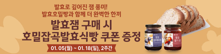![]() v 매장: 발효잼(2종) 구매 시, 발효호밀빵 6종 50% 혜택