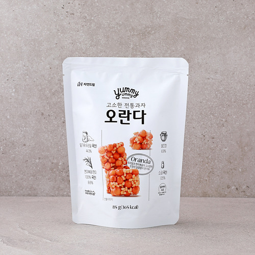 | | 공급시기 | | 상시공급 | | | 식품유형 | | 과자(유탕처리제품) | | | 생산지 | | ㈜자연드림치유식품 과자공방 / 전남 구례군 용방면 용산로 107-98 | | | 원부재료 | | 밀가루(우리밀:국산), 당류가공품(슈가시럽, 효소제), 혼합식용유{팜올레인유(말레이시아산), 고올레산해바라기유(외국산), 토코페롤(혼합형)}, 현미볶음(현미100%:국산), 유기쌀조청[유기농백미(국산)98.5%, 엿기름{유기농보리(국산)100%}1.2%, 효소]6.8%, 유기농설탕4.3%, 소맥전분(우리밀:국산), 자연드림네이처2, 정제수, 효모, 감자전분, 자연드림네이처, 소금, 포도당, 탄산수소나트륨, 산성피로인산나트륨, 전분, 제일인산칼슘, 젖산칼슘 [밀, 대두, 우유 함유] | | | 중량설명 | | 85 g | | | 포장재질(내면) | | 폴리에틸렌 | | | 소비기한 | | 제조일로부터 6개월 | | | 보관방법 | | 직사광선을 피해 서늘한 곳에 밀봉하여 보관해주세요. | | | 영양정보표시 | |