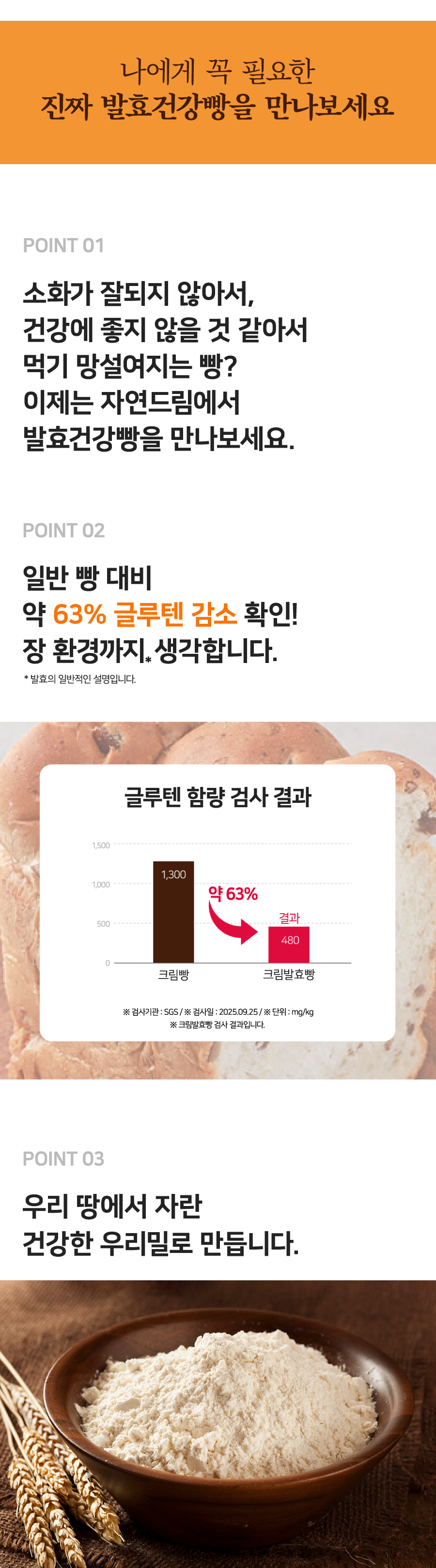 | 공급시기 | | 상시공급 | | 식품유형 | | 빵류 | | 생산지 | | 1. 생산지명 : 자연웰푸드 베이커리 공방 2. 주소 : 전라남도 구례군 용방면 용산로 107-31 | | 원부재료 | | 밀가루(우리밀/국산)44.9%, 자연드림네이처4[버터(우유/국산), 가공유지{팜에스테르화유(팜유/말레이시아산)}, 팜유, 유크림, 팜스테아린유] , 슈가파우더(설탕, 전분), 자연드림네이처[버터(우유/국산), 식물성유지(팜유/말레이시아산), 가공유지, 유크림, 소금], 유기농설탕5.8 %, 전란액, 효모, 우유, 곡류가공품, 전지분유, 글루텐, 소금(국산), 유청분말, 천연향료, 기타가공품1, 기타가공품2, 당류가공품, 비타민C [달걀, 우유, 대두,밀 함유] | | 포장재질 | | 폴리프로필렌(내면) | | 소비기한 | | 제조일로부터 5일까 | | 보관방법 | | 실온보관 (1~35℃) | | 영양성분표시 | | 총 내용량 70 g (275 kcal) | 영양정보 | 70g 당 | 1일 영양성분 기준치에 대한 비율 | 나트륨 | 190 mg | 10 % | 탄수화물 | 35 g | 11 % | 당류 | 9 g | 9 % | 지방 | 12 g | 22 % | 트랜스지방 | 0 g | - | 포화지방 | 11 g | 73 % | 콜레스테롤 | 25 mg | 8 % | 단백질 | 7 g | 13 % | 1일 영양성분 기준치에 대한 비율(%)은 2,000kcal 기준이므로 개인의 필요 열량에 따라 다를 수 있습니다. |
