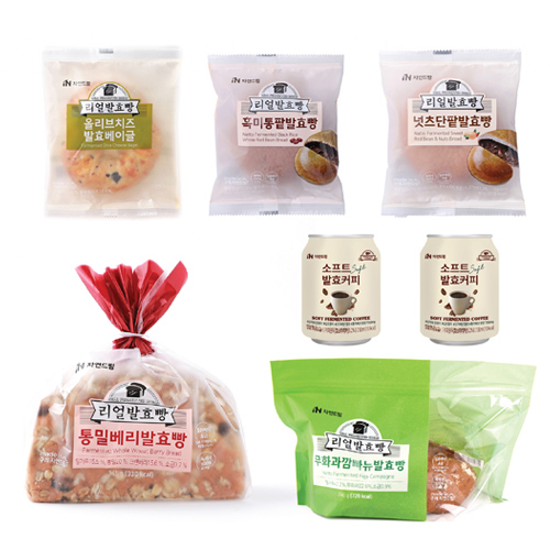 6. 소프트SOFT발효커피 정제수,소프트(SOFT)발효커피[커피(르완다),곡류가공품(쌀/국산),조제종국],천연향료(커피향),혼합제제(향료,프로필렌글리콜,곡물주정) | | 중량설명 | | 845.48 g (통밀베리발효빵 345g*1개, 무화과깜빠뉴발효빵 240g*1개, 올리브치즈발효베이글 100g*1개, 넛츠단팥발효빵 80g*1개, 흑미통팥발효빵 80g*1개, 소프트발효커피*캔 238ml*2개) | | 포장재질 | | 1. 통밀베리발효빵,무화과깜빠뉴발효빵,올리브치즈발효빵,넛츠단팥발효빵,흑미통팥발효빵 : 폴리프로필렌 2. 소프트SOFT발효커피 : 알미늄 캔 / 질소충전 | | 소비기한 | | * 별도 표기일까지