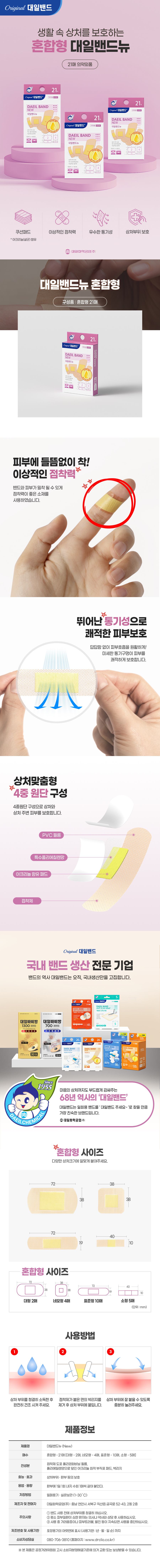 | - 반창고의 대명사, 진짜 대일밴드 - 상처 크기에 맞게 골라 쓸 수 있게 4타입 혼합형 | ||||