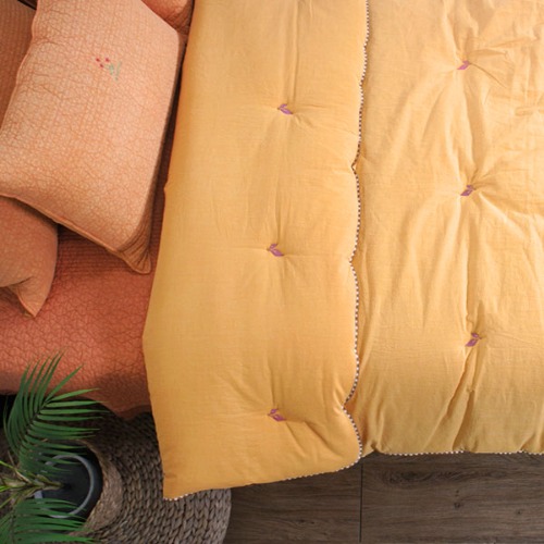 - 천연염색 침구는 햇볕을 받아야 원적외선의 방출량이 증가하므로 햇볕 좋은날에는 일주일에 한두번 정도씩 1~2시간씩 일광욕을 시켜주세요.