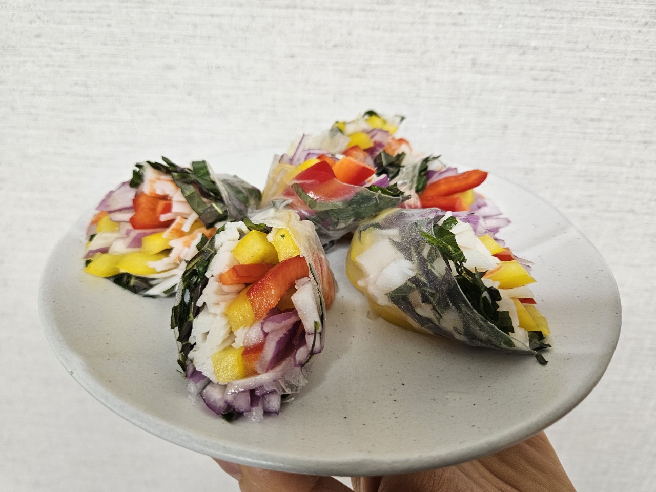 애호박, 치즈, 견과류, 라이스페이퍼 등 모든 재료의 궁합이 부담 없는 담백한 맛이었습니다.