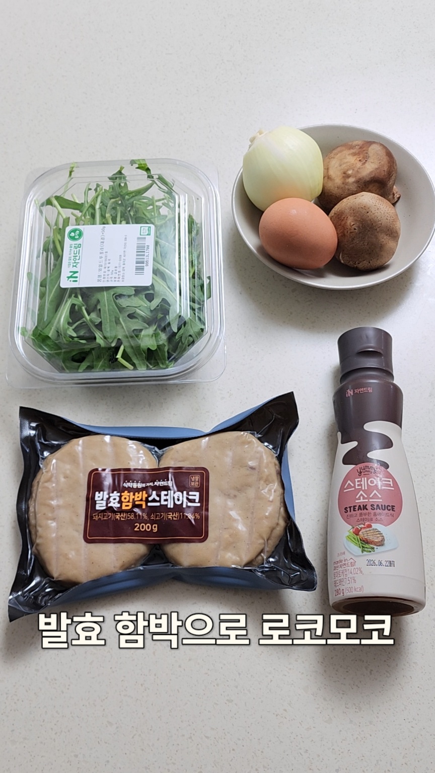 자연드림 발효함박, 스테이크 소스, 루꼴라를 사용했는데 재료가 간단해서 부담 없이 만들 수 있었어요.