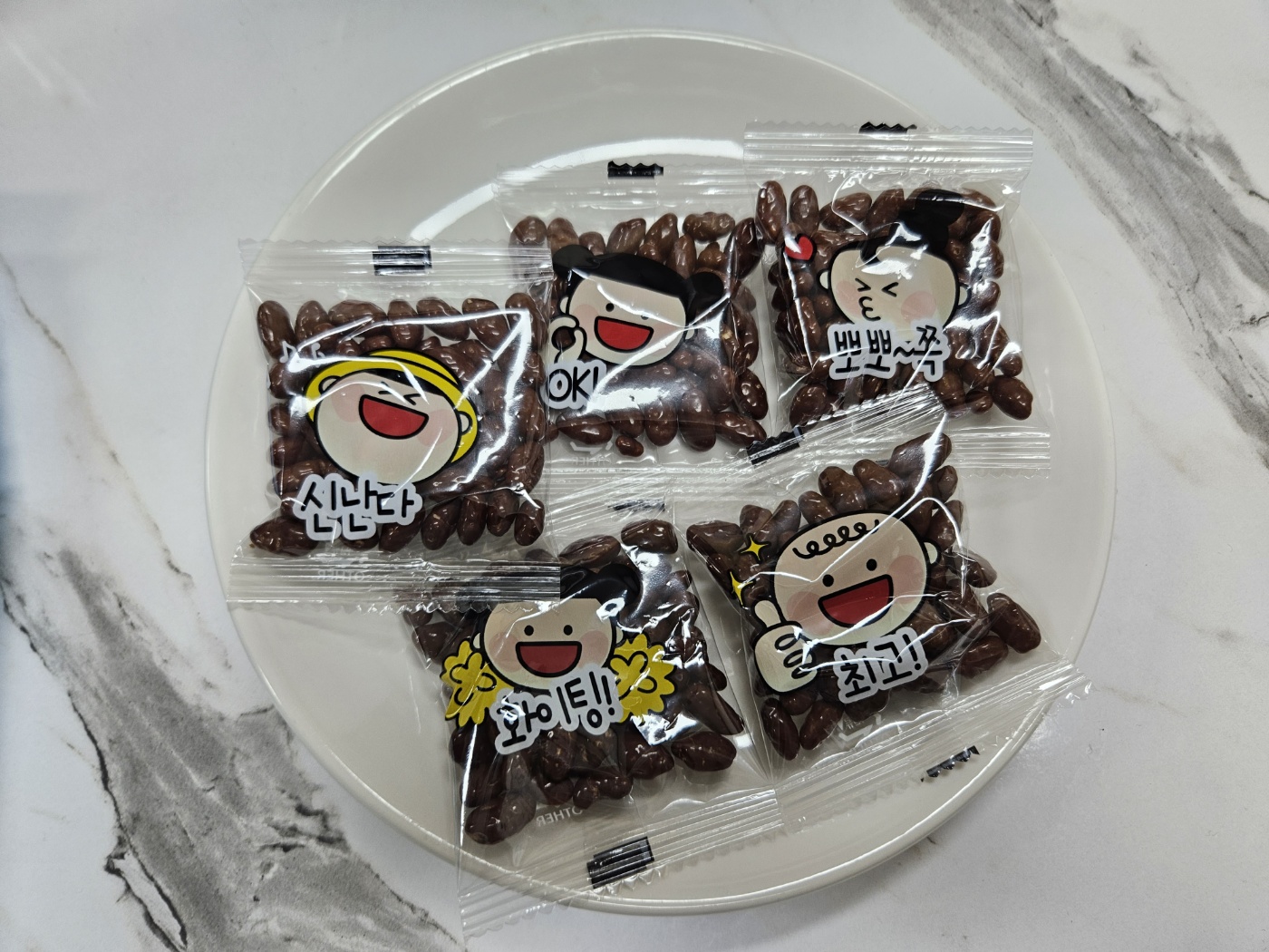 한봉지 안에 20개의 낱개포장으로 한꺼번에 초코를 많이 먹지않도록 조절할수있어 좋았고 다양한 문구가 쓰여있어 고르는 재미도 있었습니다